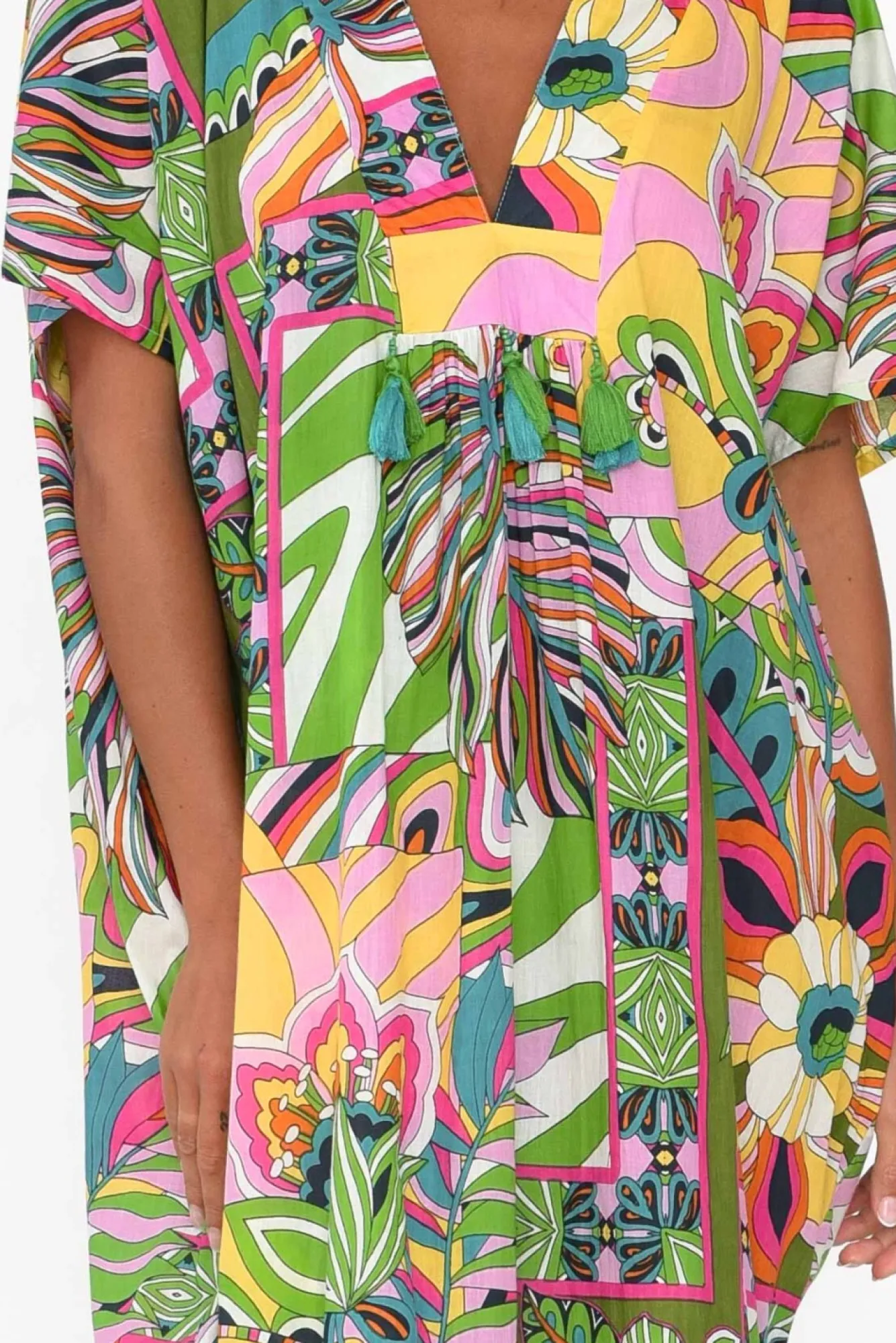 Be the first to review “Cotton Dresses<Mozaic Tiwi Green Tropical Cotton Kaftan” Cancel reply