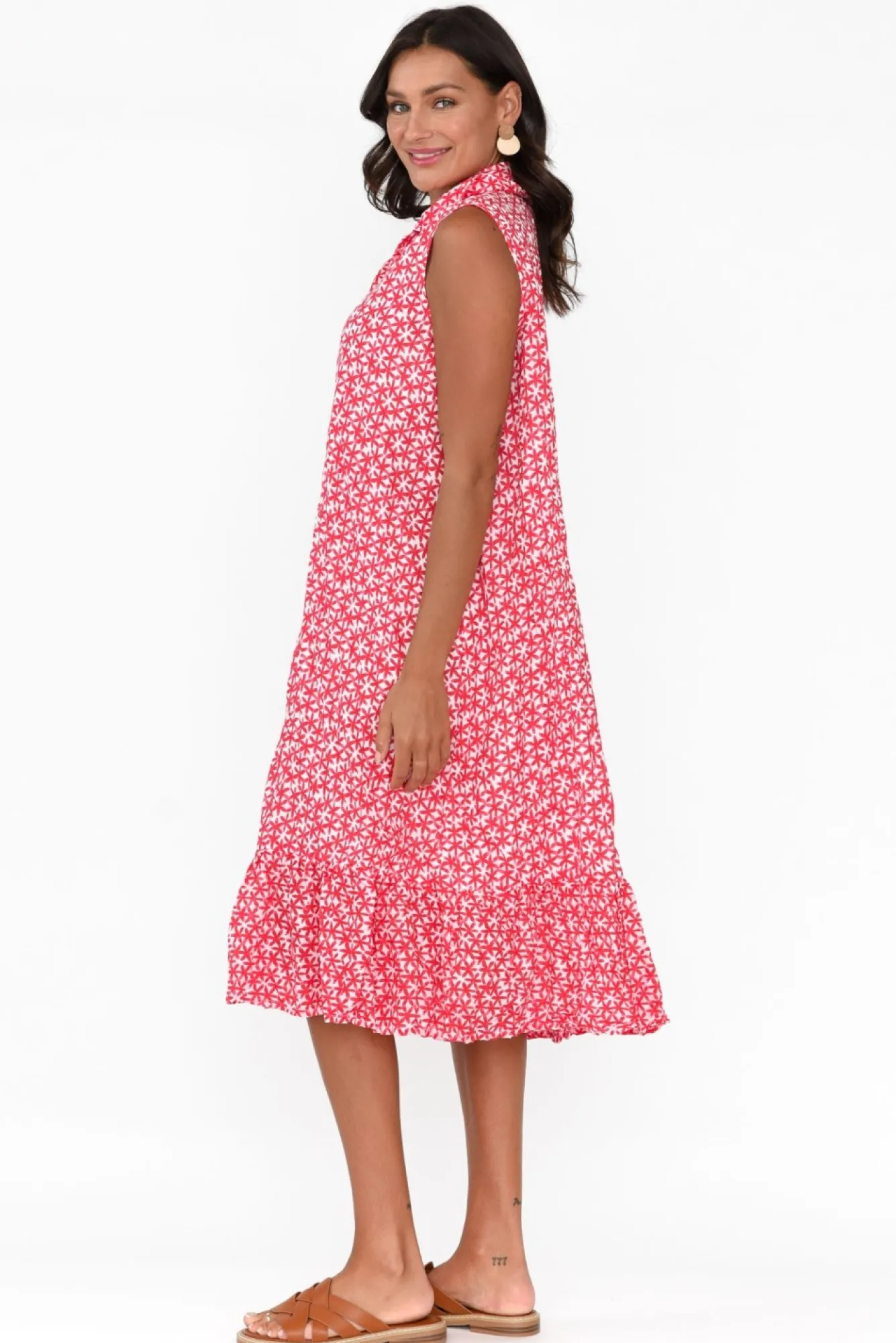 Fit: True To Size. Refer To Size & Fit Tab Below For Specific Size RecommendationNNfabric: 100% CottonNlovely Lightweight And Breathable Cotton Fabric With A Must-Have Crinkle TextureNcollared Neckline With Complementary Wooden Buttons From Neckline To HemNsleeveless Design And Full Shoulder Coverage NNsimple Shift Silhouette For Ultimate ComfortNNsewn-In Cotton Lining – No Need For An Additional SlipNfrilled Hem Falls Past The Knees NNNcare: Cool Gentle Hand Wash RecommendedNNcolour: Clustered Red Flower Print Over A White Base
