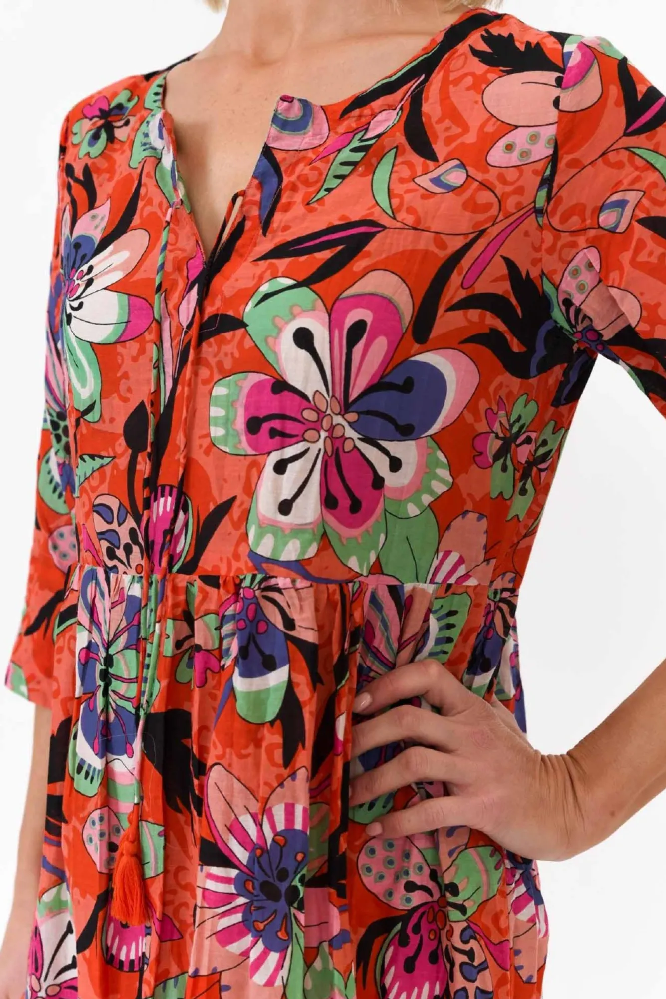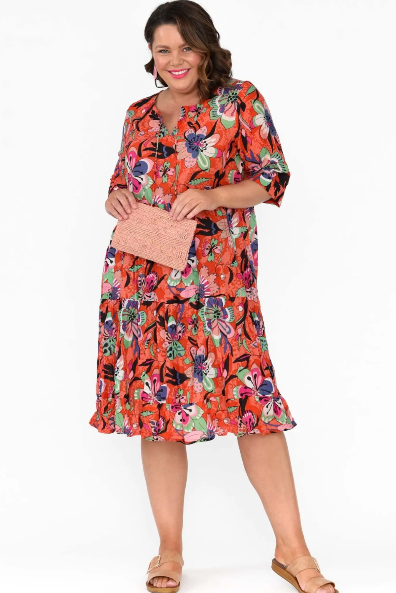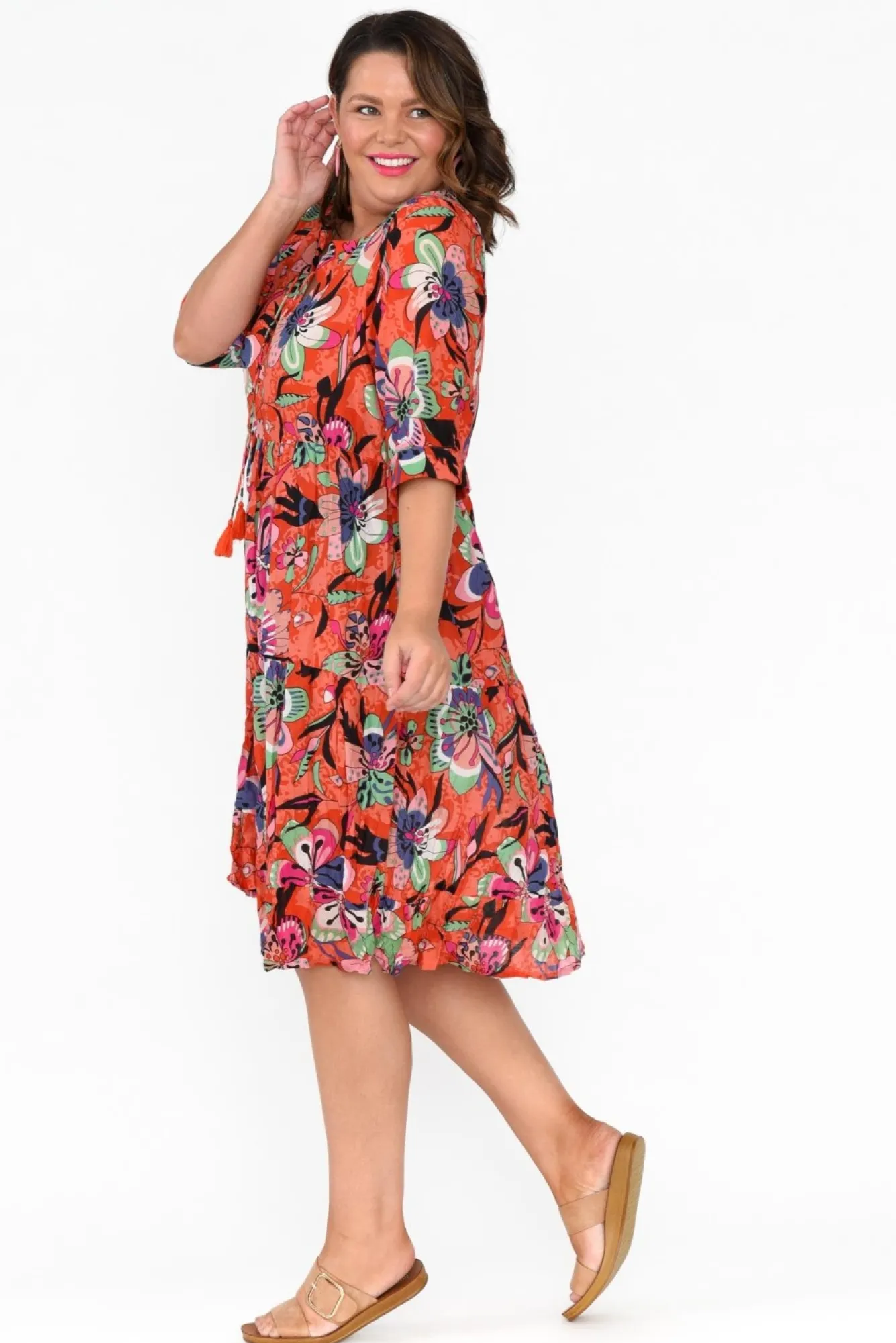 Fit: True To Size. Refer To Size & Fit Tab Below For Specific Size Recommendation NNfabric: 100% CottonNsoft Cotton Dress With A Lovely Lightweight, Breathable Feel And A No-Fuss Crinkle Cotton Texture NNwe Recommend Pairing With Your Favourite Slip For Additional CoverageNNround Banded Neckline With V-Split And Pink Tassel Tie Nelbow-Length Sleeves In A Simple, Straight ShapeNNflattering A-Line Silhouette Featuring Visible Under Bust Seam And Tiered Design Nstraight Hemline Falls To Knee Length NNNcare: Cool Gentle Hand Wash RecommendedNNcolour: Coral Pink Base With An Intricate Floral OverlayNNfabric Tip: Twist The Garment, Fold In Half And Secure With A Rubber Band To Store After Washing And Drying To Keep The Crinkle AliveNNnote: Lengths May Vary Between Colourways, Please Refer To Individual Size Charts.