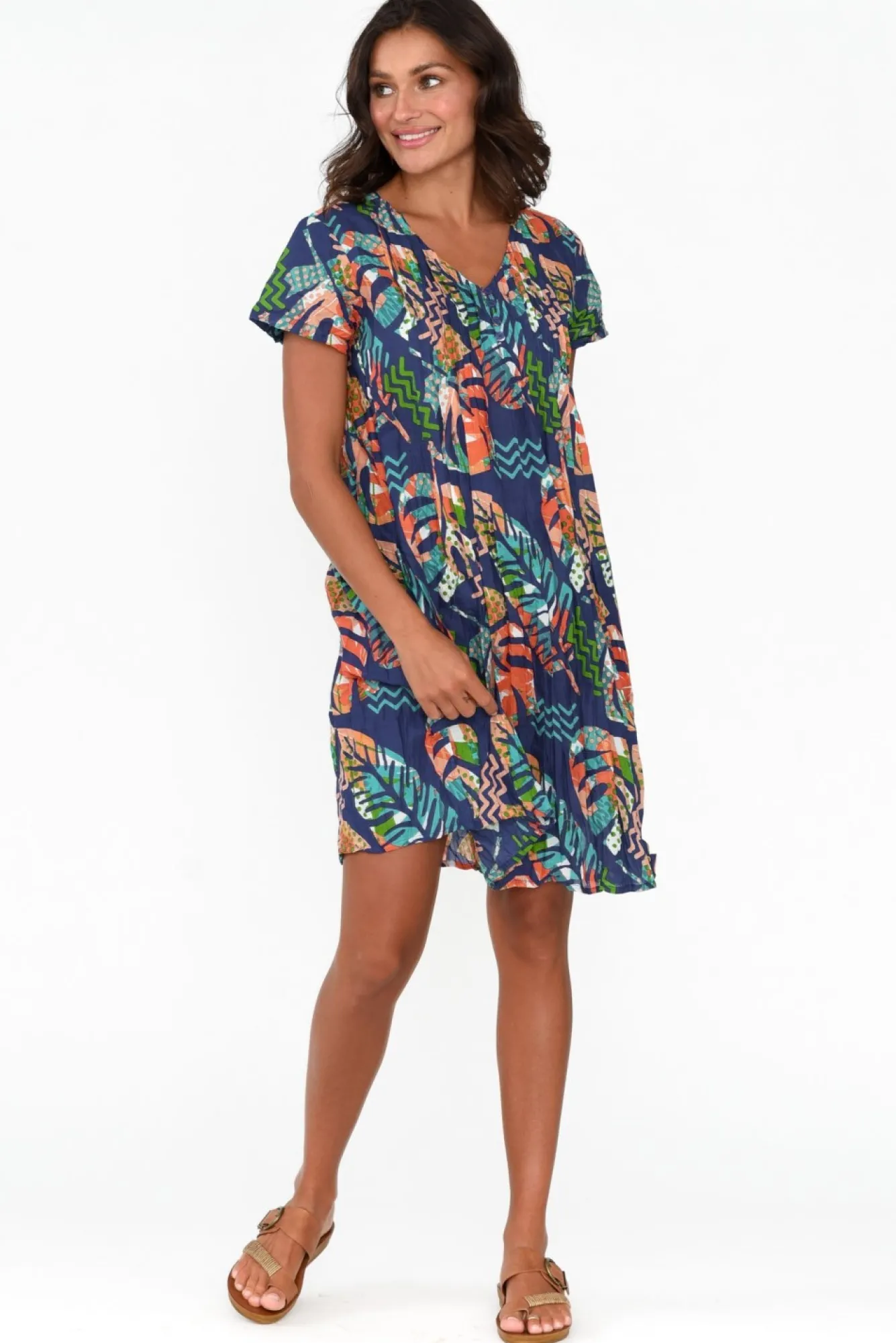 Cotton Dresses<One Summer Sabina Navy Leaf Crinkle Cotton Dress