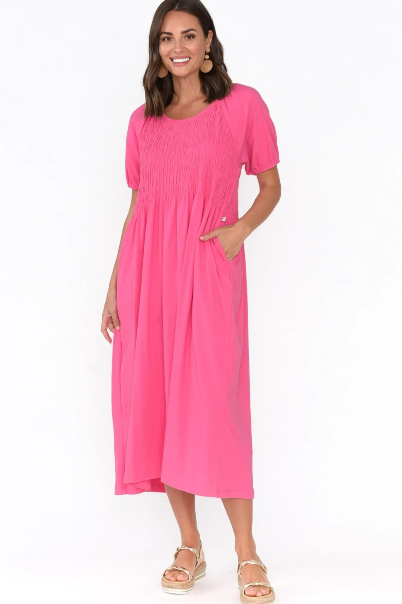 Fit: True To Size. Refer To Size & Fit Tab Below For Specific Size RecommendationNNfabric: Cotton / Elastane Nlightweight Cotton Blend With A Soft, Stretchy Finish NNsimple Round Neckline Complemented By The Shirred Bodice Nmid-Length Puff Sleeves With An Elastic Cuff Nshirred Bodice Leads To A Lovely Flowing Skirt NNtwo Handy Hip PocketsNfalls To A Midi Length NNNcare: Cool Gentle Machine Wash RecommendedNNcolour: Stunning Candy Pink