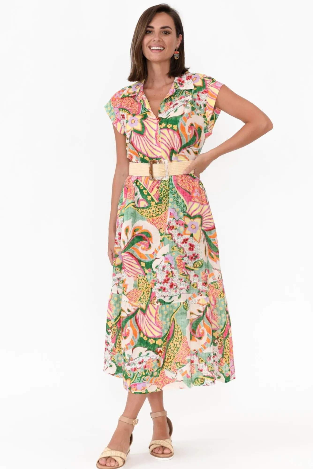 Fit: True To Size. Refer To Size & Fit Tab Below For Specific Size Recommendation NNfabric: 50% Linen 50% CottonNa Fun And Fabulous Summer Dress Crafted In Italy From Midweight, Breathable And Non-Stretch Fabric With A Lovely Textured Hand FeelNNelegant Open-Collar Neckline NNclassic Short Cap Sleeves NNflattering A-Line Silhouette With Subtle Tier DetailNNtwo Discreet Hip Pockets Nstraight Hemline Falls To Midi LengthNNNcare: Cool Gentle Hand Wash RecommendedNNcolour: Cream Base With Ornate Green Paisley Print NNnote: Belt Is Not Included With The Dress, Shop Our Selection Of Belts Here!