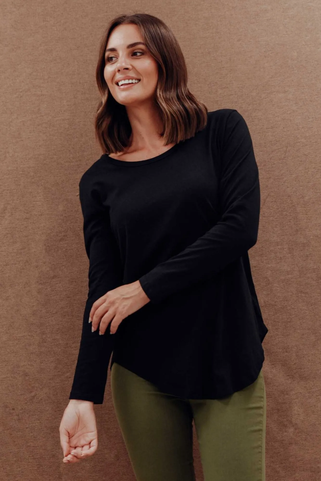 Fit: True To Size. Refer To Size & Fit Tab Below For Specific Size RecommendationNNfabric: 100% CottonNcomfortable, Long Sleeve Style With Cotton Stretch – A Wardrobe Staple This Season!Nround NecklineNNfull Length Tapered SleevesNNrelaxed Straight Cut FitNdramatic Curved, Hi-Lo Hemline CombinationNNhip Skimming LengthNNcare: Cool Gentle Hand Wash RecommendedNNcolour: Classic Black Shade
