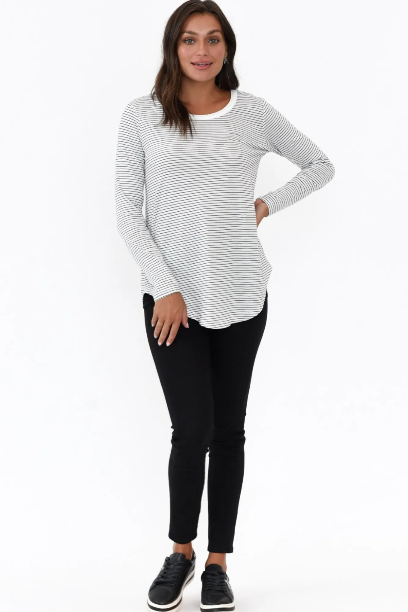 Cotton Tops<Betty Basics Megan White Stripe Long Sleeve Cotton Top