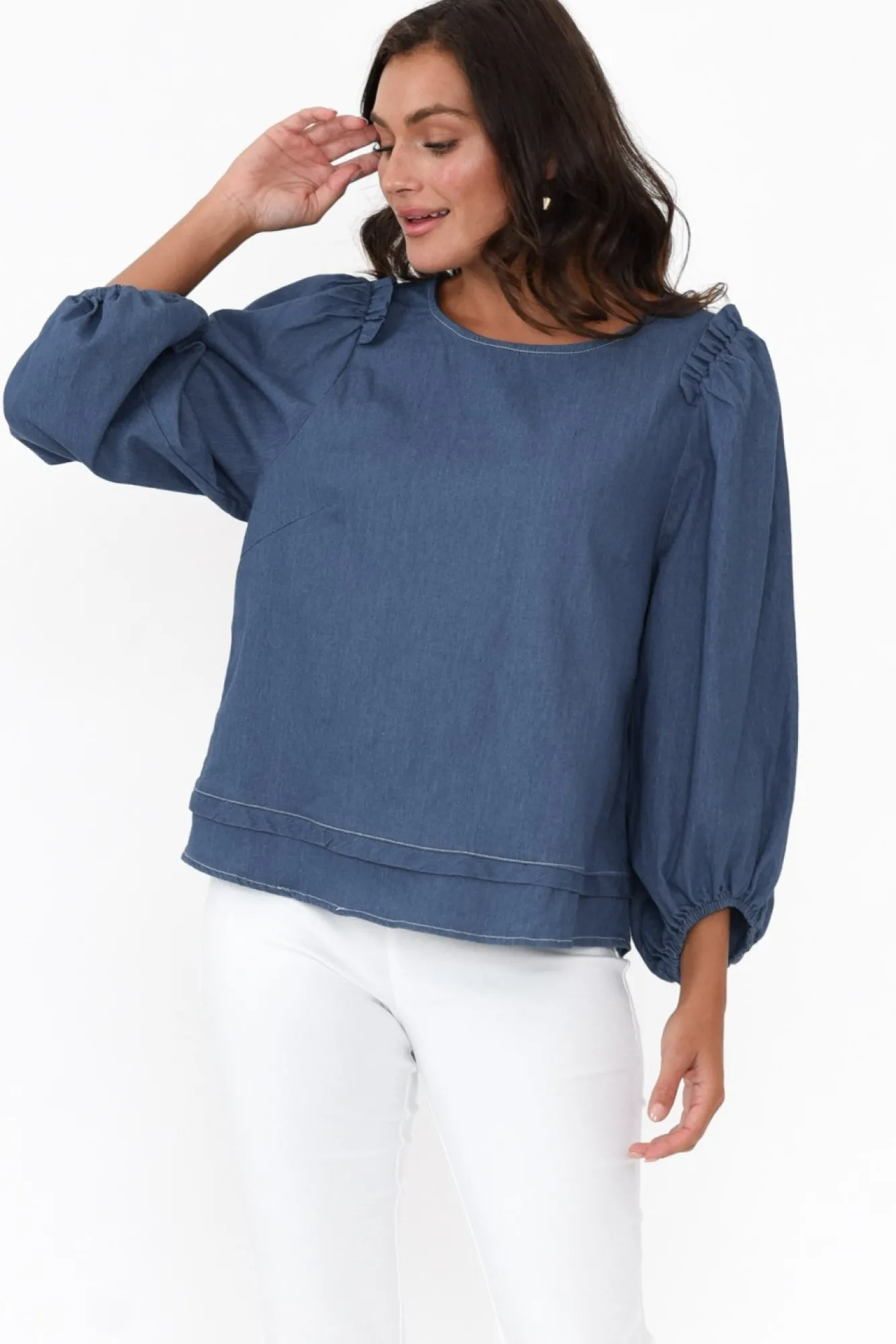 Cotton Tops<Cali and Co Ferguson Dark Blue Cotton Blend Frill Top