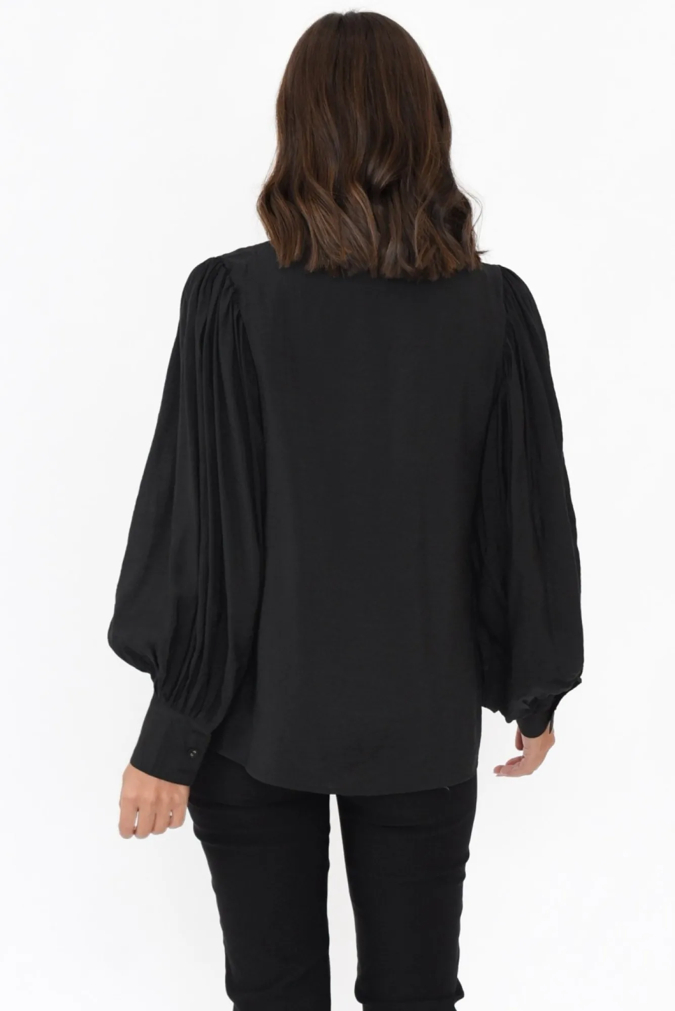 Fit: True To Size. Refer To Size & Fit Tab Below For Specific Size RecommendationNNfabric: 70% Cotton, 30% PolyesterNlightweight, Non-Stretch Cotton Blend With A Subtle Sheen And Slub Texture NNround Collar With A Deep V SplitNNfully Lined For Extra CoverageNseam Details Around V Split Elevate This StyleNfull-Length Balloon Sleeves With A Button Cuff NNflattering A-Line SilhouetteNcurved Hi-Lo Hem Falls To A Below-Hip LengthNNcare: Cool Gentle Machine Wash RecommendedNNcolour: Versatile Black