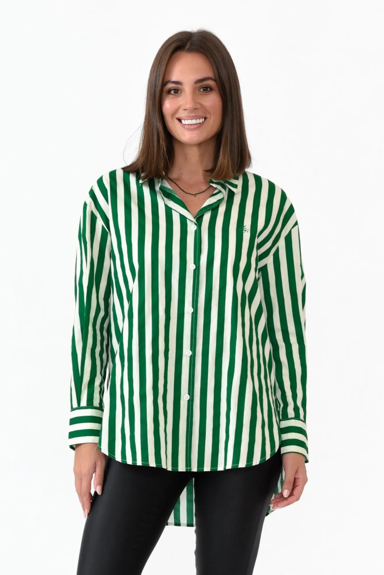 Cotton Tops<Dear Sutton Presley Green Stripe Cotton Poplin Shirt