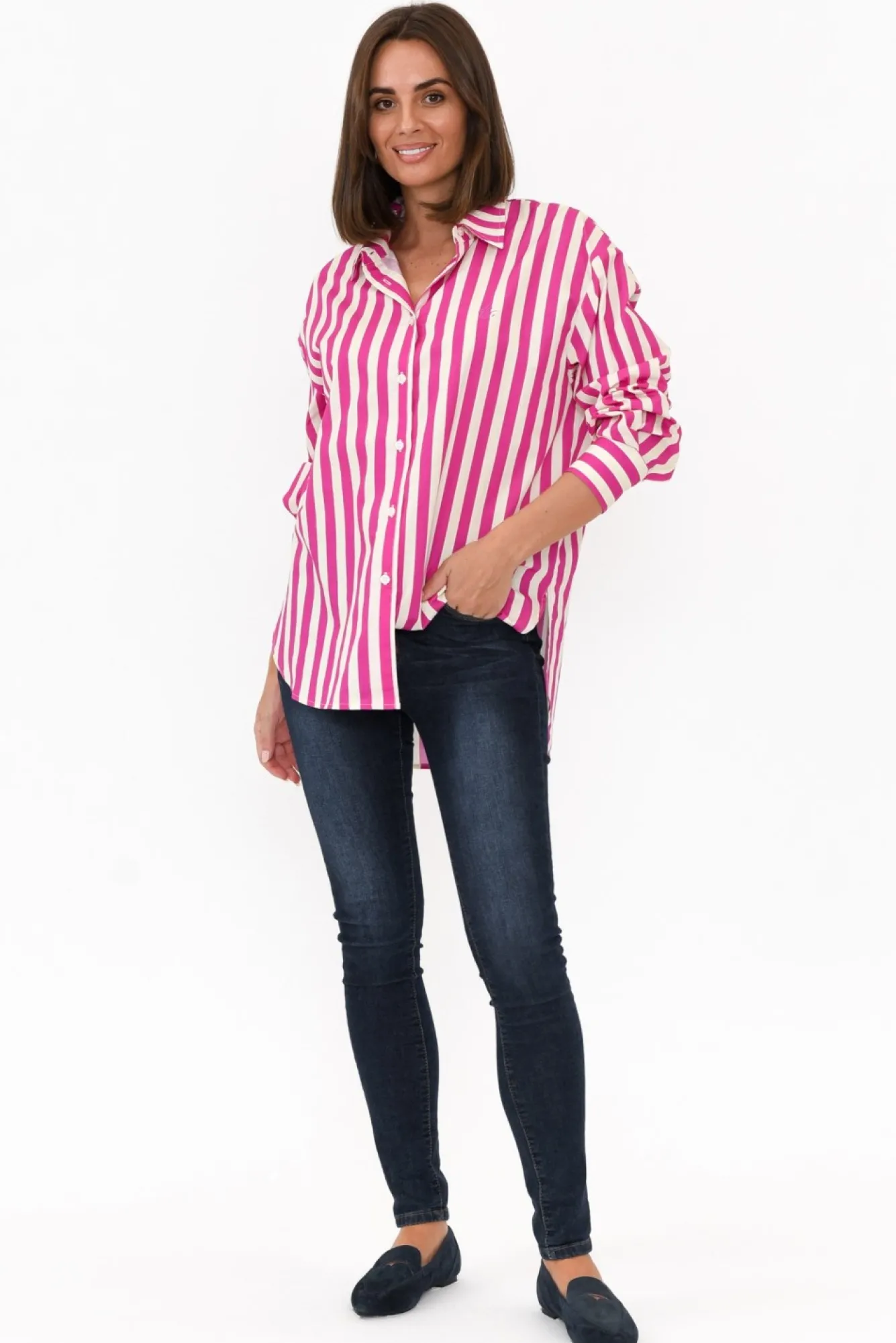 Cotton Tops<Dear Sutton Presley Pink Stripe Cotton Poplin Shirt