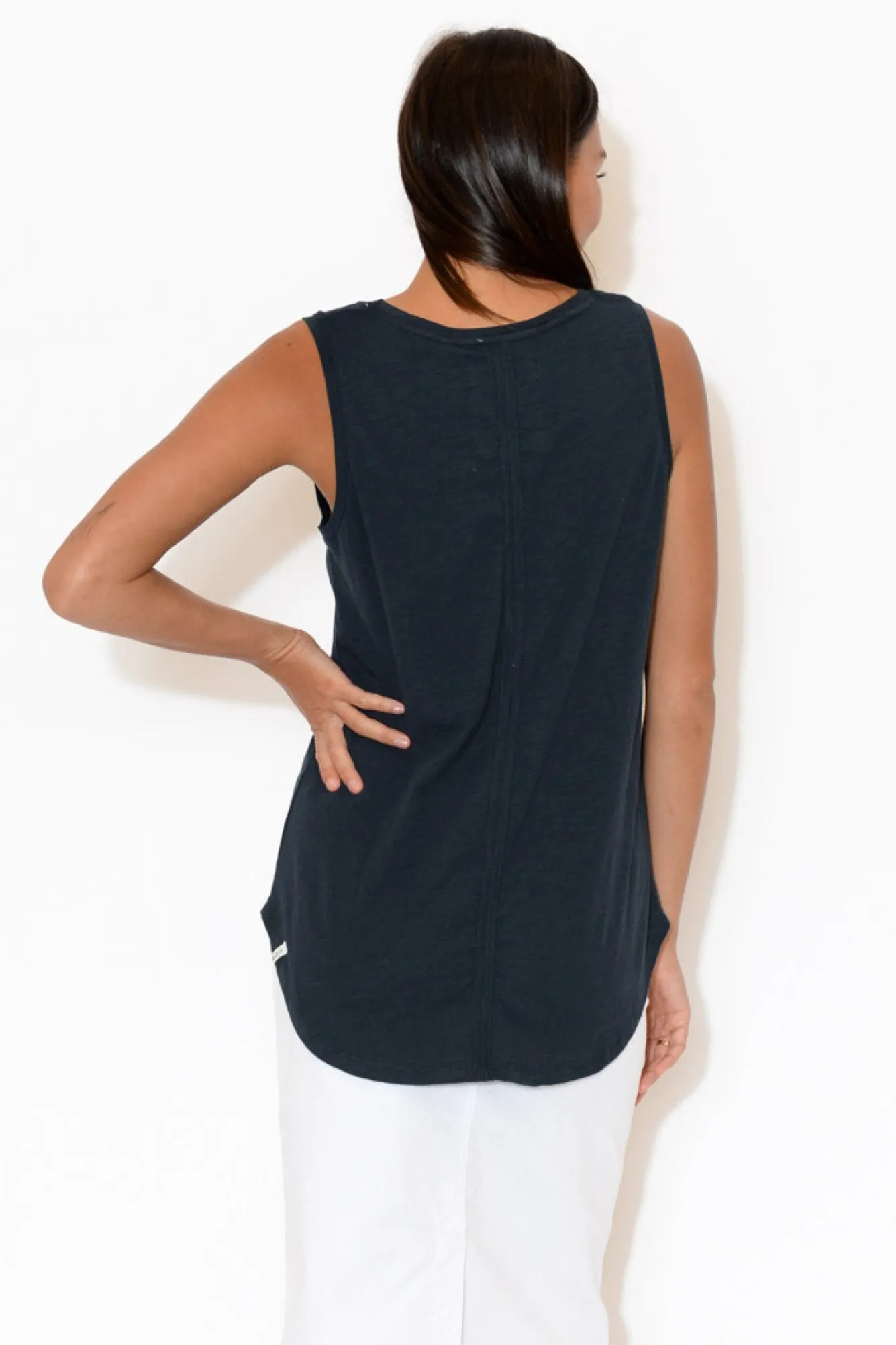 Fit: True. Refer To Size & Fit Tab Below For Specific Size Recommendation NNfabric: 100% CottonNlightweight, Breathable, Non Stretch FabricNround NecklineNsleeveless TankNcurved HemlineNdouble Seam Panel At Centre BackNrelaxed Silhouette Nbelow Hip LengthNNcare: Cool Gentle Machine Wash RecommendedNNcolour: Classic Navy Shade
