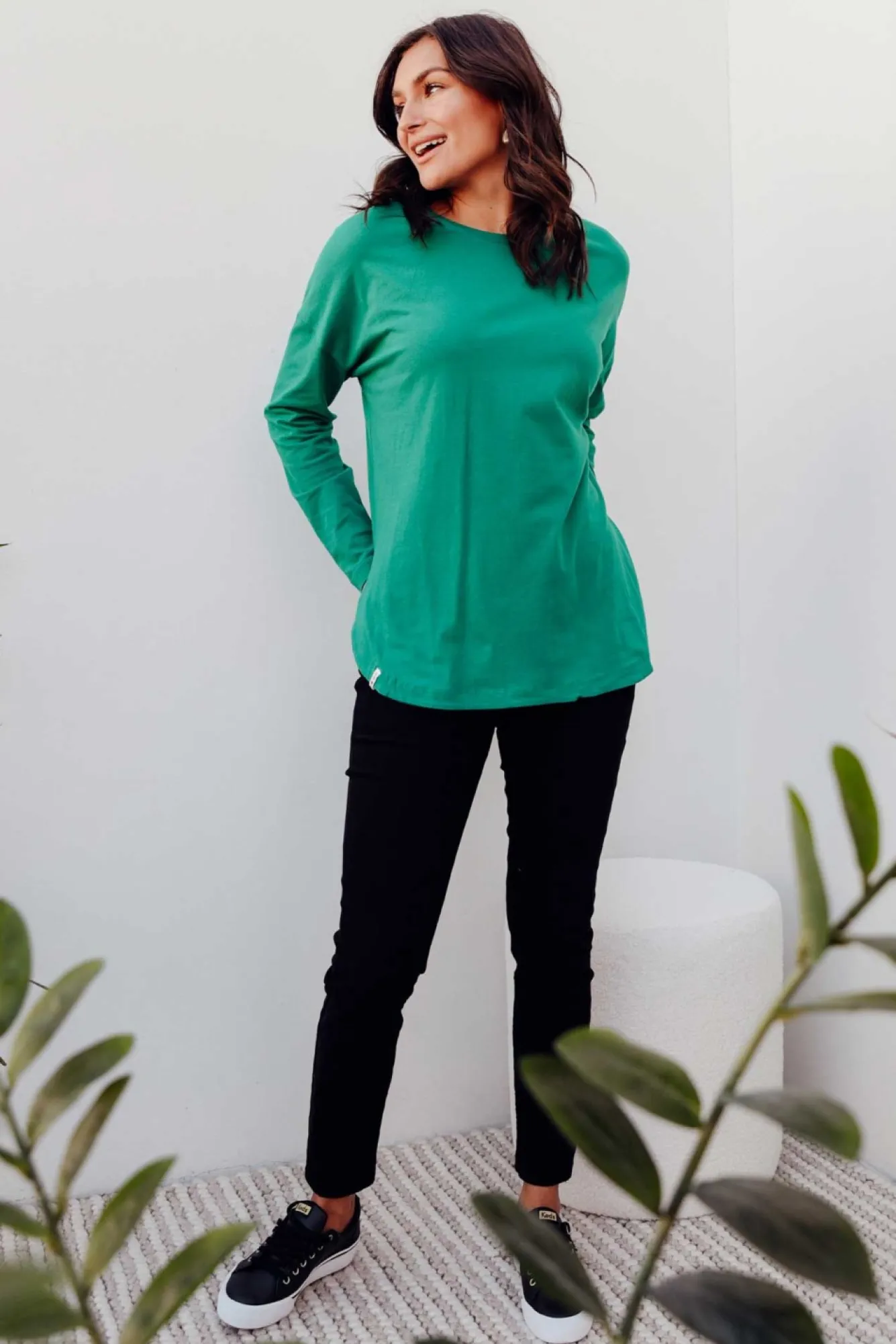 Fit: True To Size. Refer To Size & Fit Tab Below For Specific Size RecommendationNNfabric: 95% Cotton, 5% Elastane Na Transeasonal Wardrobe Staple Made From Lightweight And Breathable Cotton With A Soft And Stretchy Hand FeelNNclassic Round Neckline NNfull-Length Sleeves With Drop Shoulder Seam For Ease Of Movement Nrelaxed Silhouette Falls Drapes Down The Body And Avoids ClingingNsignature Elm Branding Tab Featured On The Hemline And Left-Side Seam Ncurved Hi-Lo Hemline Falls Below Hip Length NNNcare: Cool Gentle Machine Wash RecommendedNNcolour: Deep Teal Shade