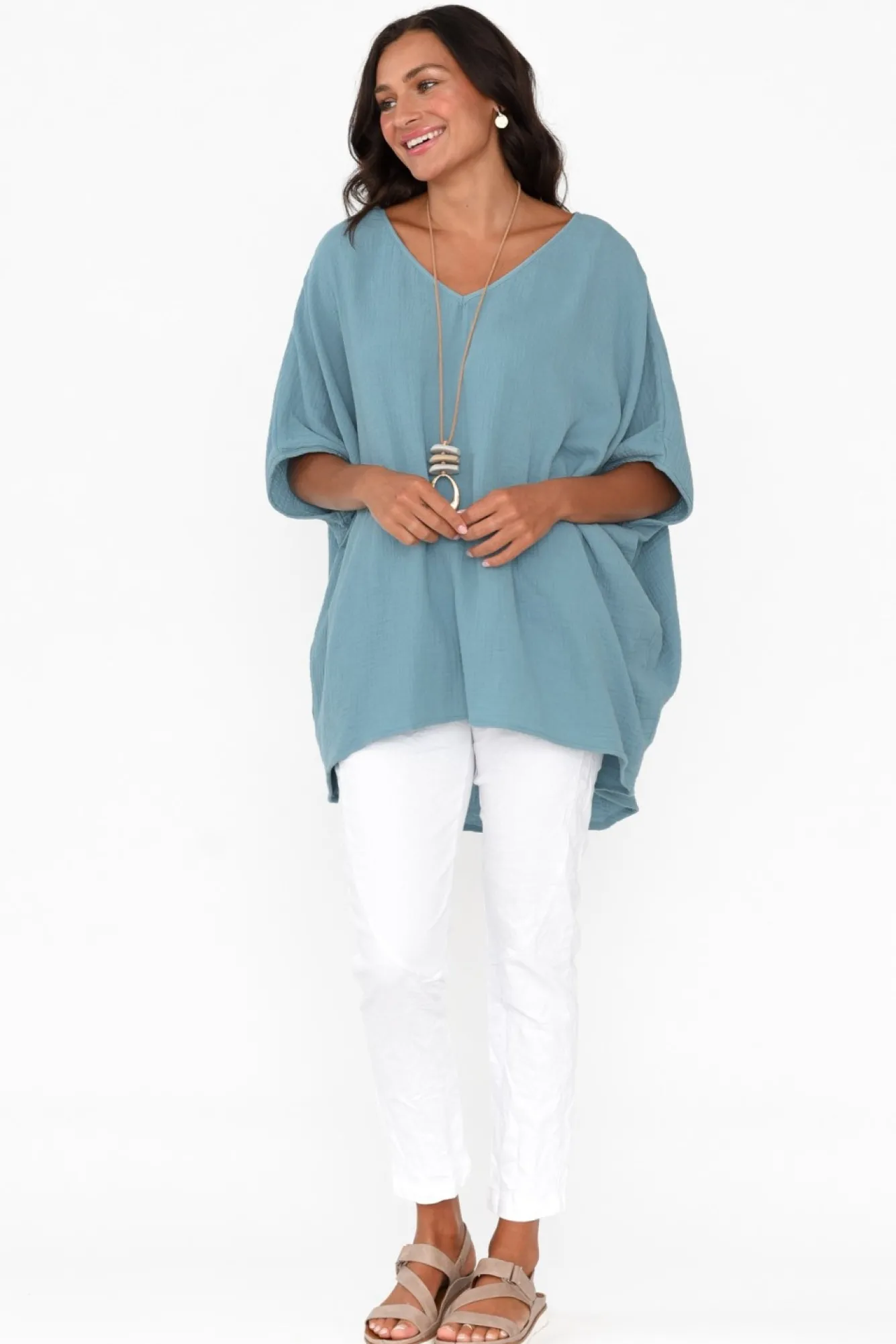 Fit: True To Size. Refer To Size & Fit Tab Below For Specific Size RecommendationNNfabric: 100% CottonNlightweight And Breathable Cotton Featuring A Cheesecloth-Textured Crinkle FinishNsharp V-Neckline Accentuates CollarbonesNbatwing Sleeves Fall To The ElbowNNdraped Silhouette Tapers Towards The HemNdramatic Hi-Lo Hemline Falls Below The Hips Providing Ample CoverageNNcare: Cool Gentle Machine Wash RecommendedNNNcolour: Soft Steel Blue Shade