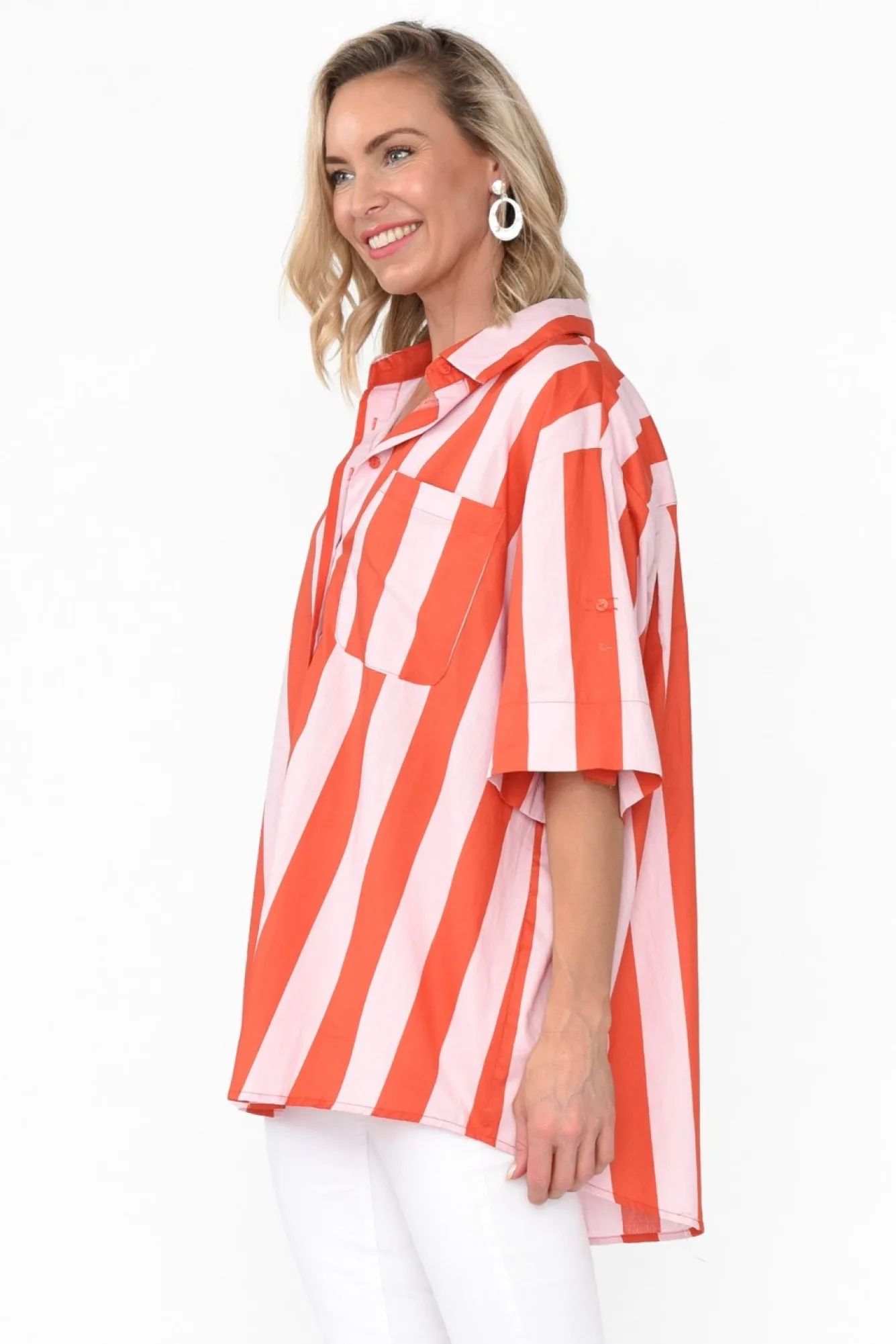 Cotton Tops<Label Of Love Yanis Pink Stripe Cotton Shirt