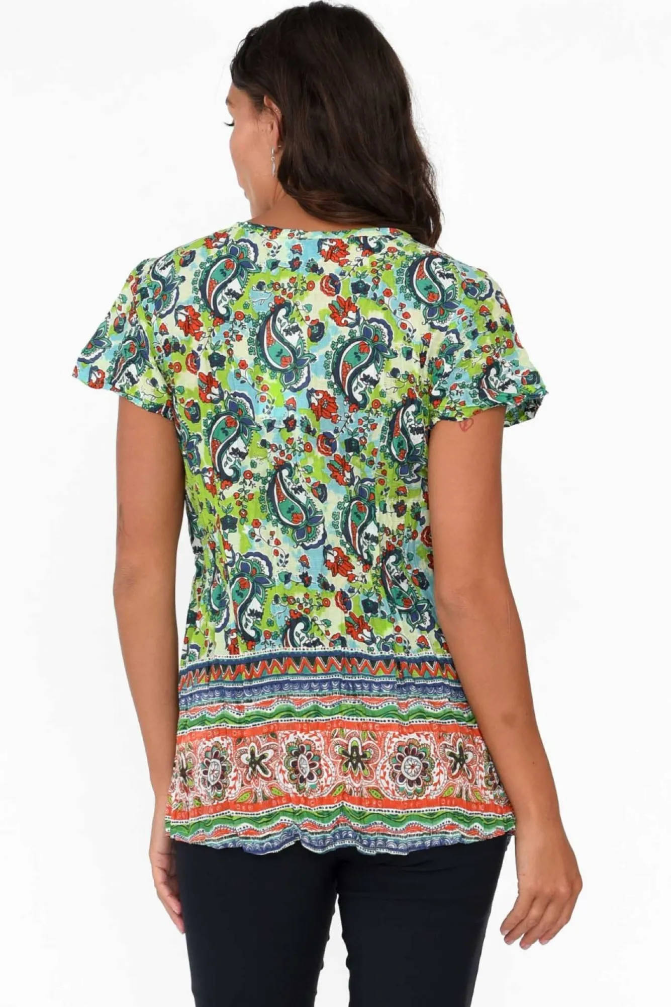 Cotton Tops<One Summer Fia Green Paisley Cotton Top