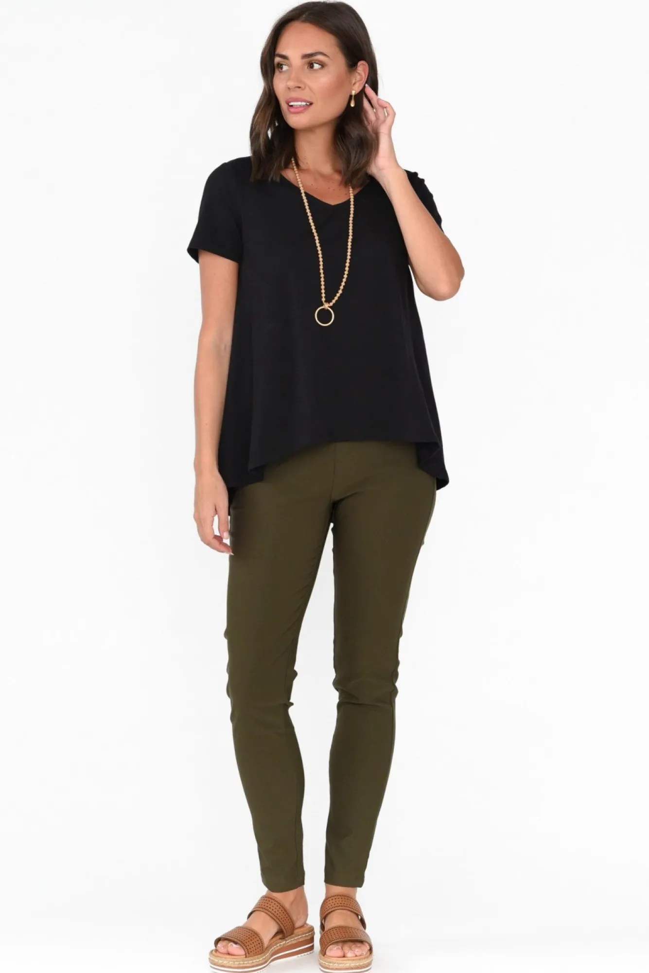 Fit: True To Size. Refer To Size & Fit Tab Below For Specific Size RecommendationNNfabric: Cotton / ElastaneNlightweight, Stretchy And Soft Cotton Blend Is Perfect For All-Day WearNNtimeless V-Neckline Nshort Tee-Style Sleeves NNflattering A-Line Silhouette Creates A Swing Effect At The HipsNcurved Hi-Lo Hem Provides More Coverage At The Back NNNcare: Cool Gentle Machine Wash RecommendedNNcolour: Classic Black