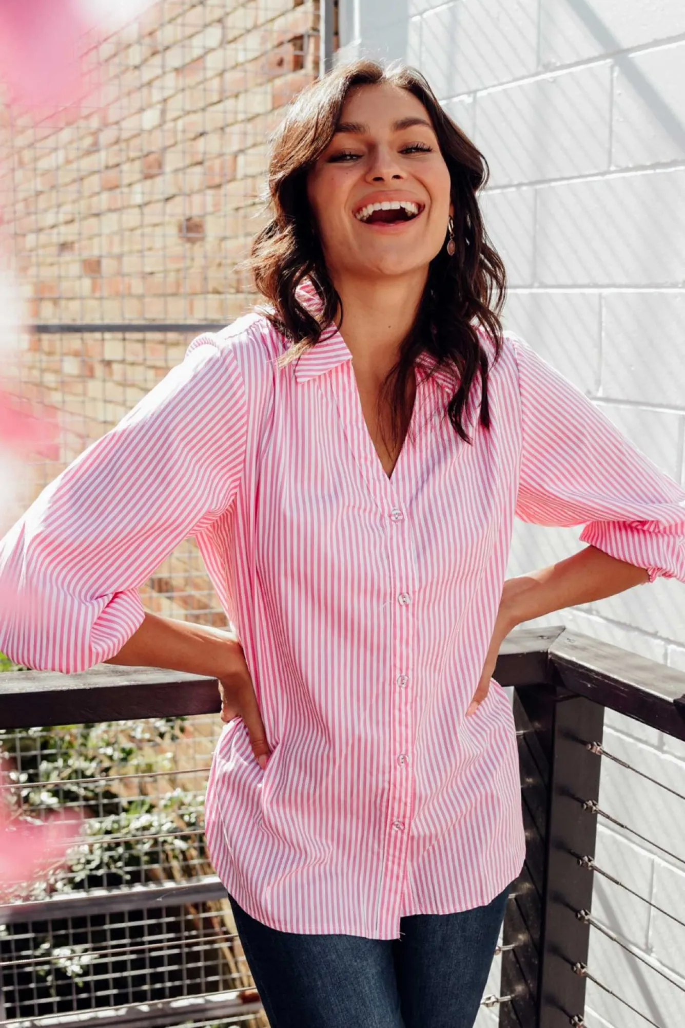 Cotton Tops<Silver Wishes Troy Pink Stripe Cotton Shirt