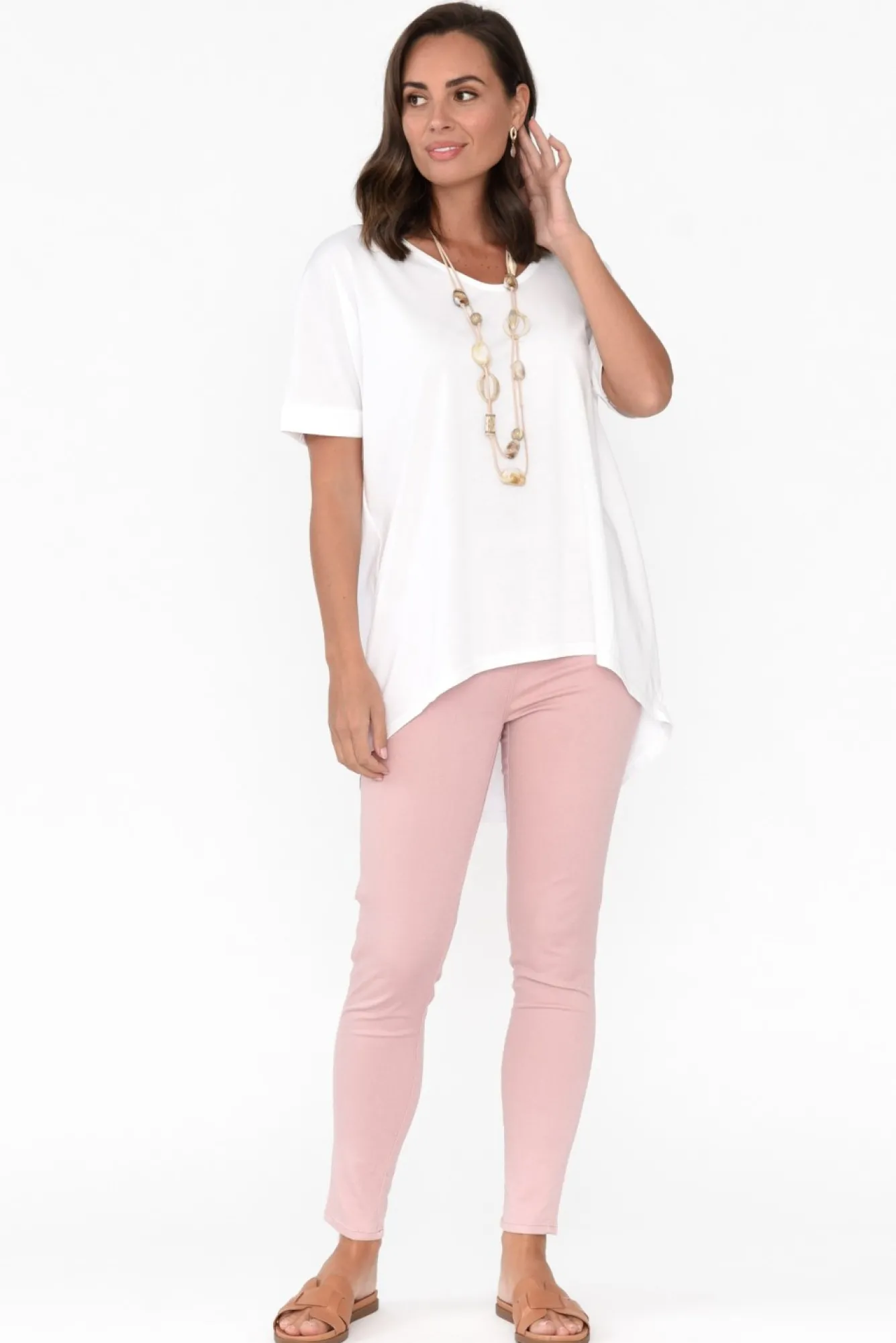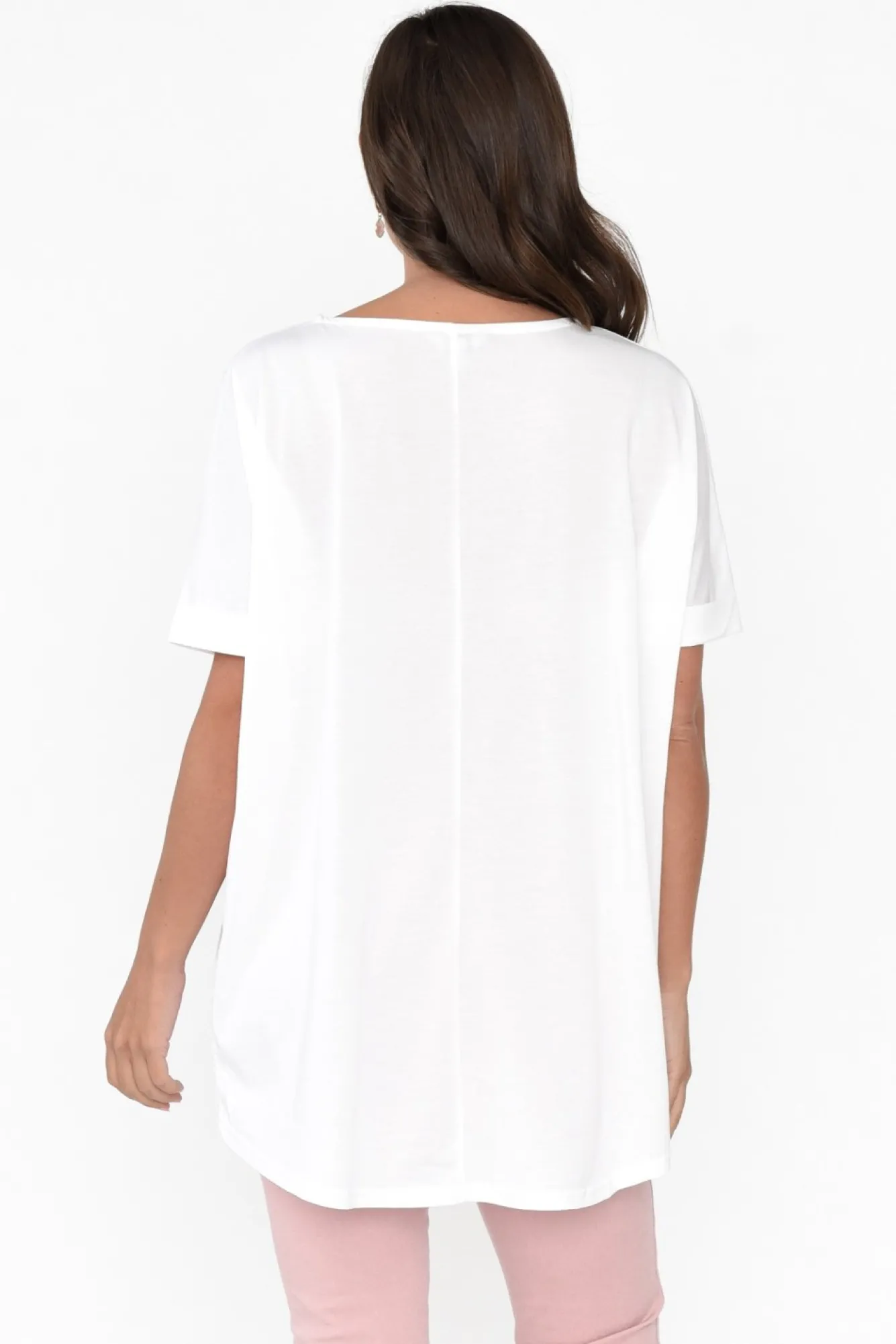 Fit: True To Size. Refer To Size & Fit Tab Below For Specific Size RecommendationNNfabric: 40% Cotton, 40% Rayon, 20% Polyester Nlightweight And Non-Stretch Cotton Rayon Blend With A Silky Soft Hand Feel Nrounded V-Neckline NNstraight Sleeves With A Stitched Rolled Hem And Drop Shoulder Create A Relaxed Look NNdrape Silhouette Offers All-Day Comfort Ndramatic Hi-Lo Hem Provides More Coverage At The BackNNNcare: Cool Gentle Machine Wash RecommendedNNcolour: Classic White