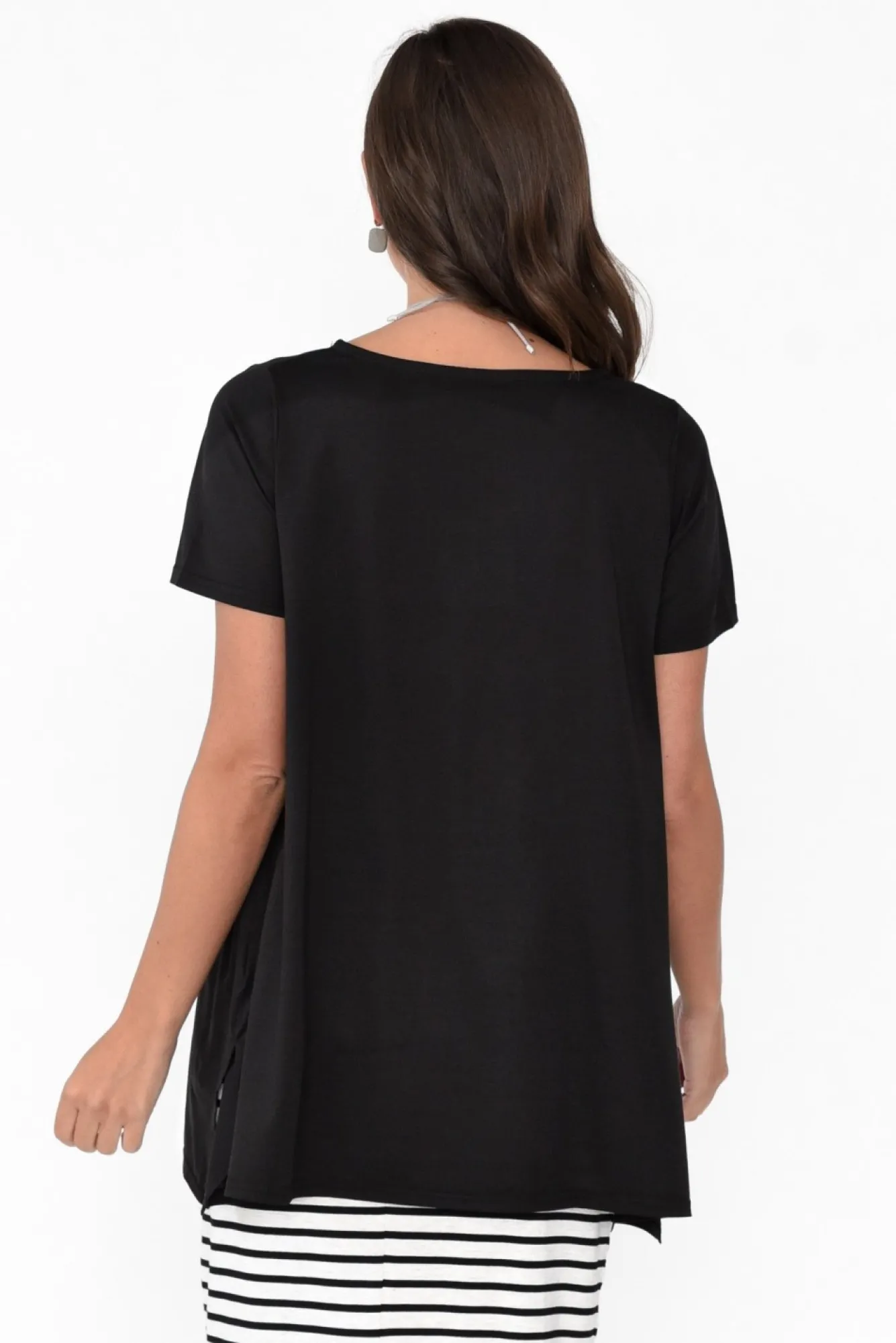 Fit: True To Size. Refer To Size & Fit Tab Below For Specific Size RecommendationNNfabric: 40% Cotton 40% Rayon 20% PolyesterNan Elevated And Comfortable Basic Made From Gorgeous Lightweight, Non-Stretch And Ultra-Soft And Smooth FabricNsoft V-NecklineNNtimeless Tee Style SleevesNNflattering Drape Silhouette Cascades Beautifully Down The BodyNNfeaturing 16Cm Side SplitsNNsubtle Hi-Lo Hemline Falls Below Hip LengthNNNcare: Cool Gentle Machine Wash RecommendedNNcolour: Classic Black