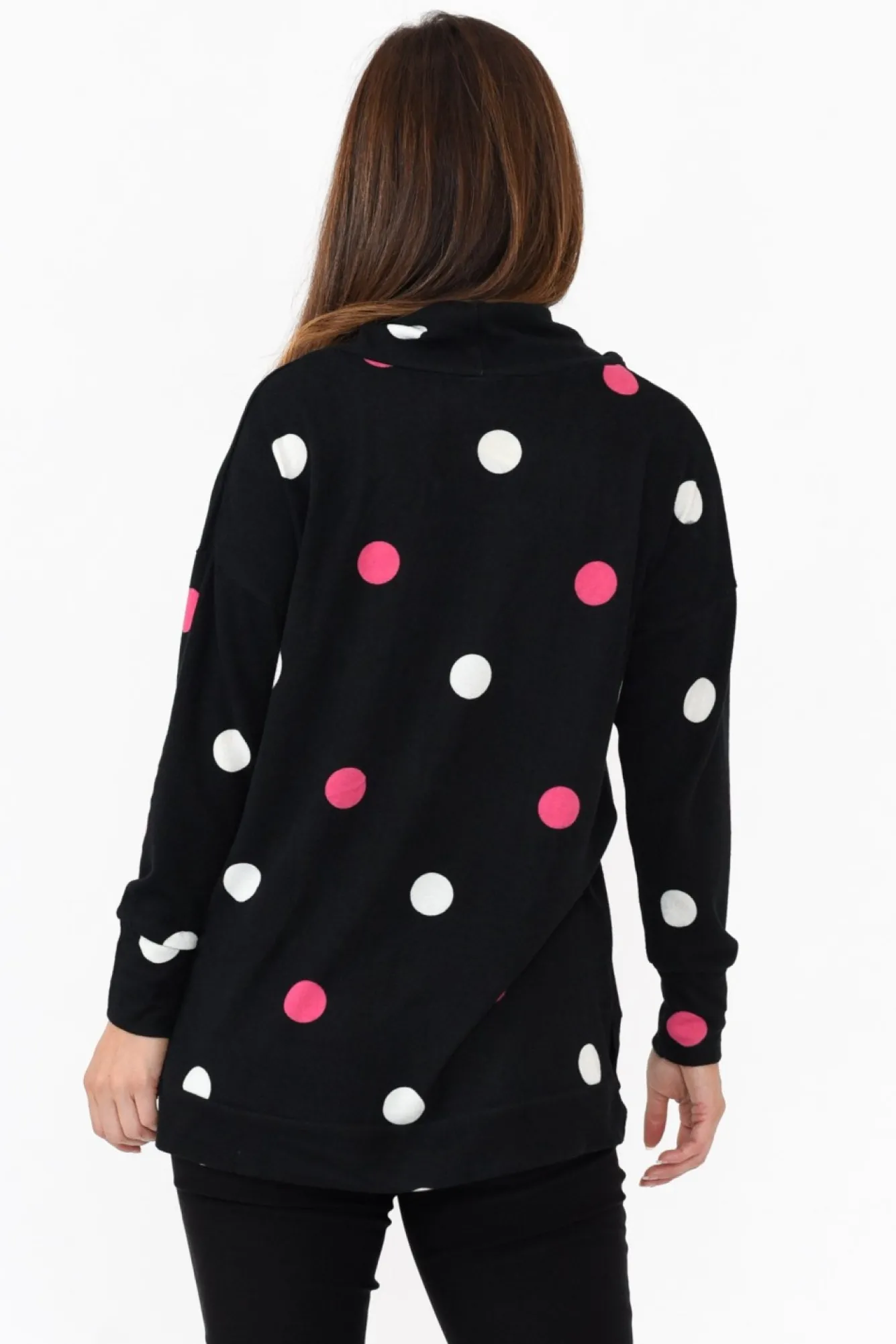 Fit: True To Size. Refer To Size & Fit Tab Below For Specific Size RecommendationNNfabric: Cotton Cashmere Ncosy Midweight Cotton Blend Fabric With An Ultra-Soft Hand FeelNNdraping Cowl-Style Neckline NNcomfortable Full-Length SleevesNNsimple Straight Silhouette With Small Side Splits Of Ease-Of-Movement NNhi-Lo Hemline Falls To A Hip-Skimming Length NNcare: Cool Gentle Machine Wash RecommendedNNcolour: Classic Black Base With White And Pink Polka Dots