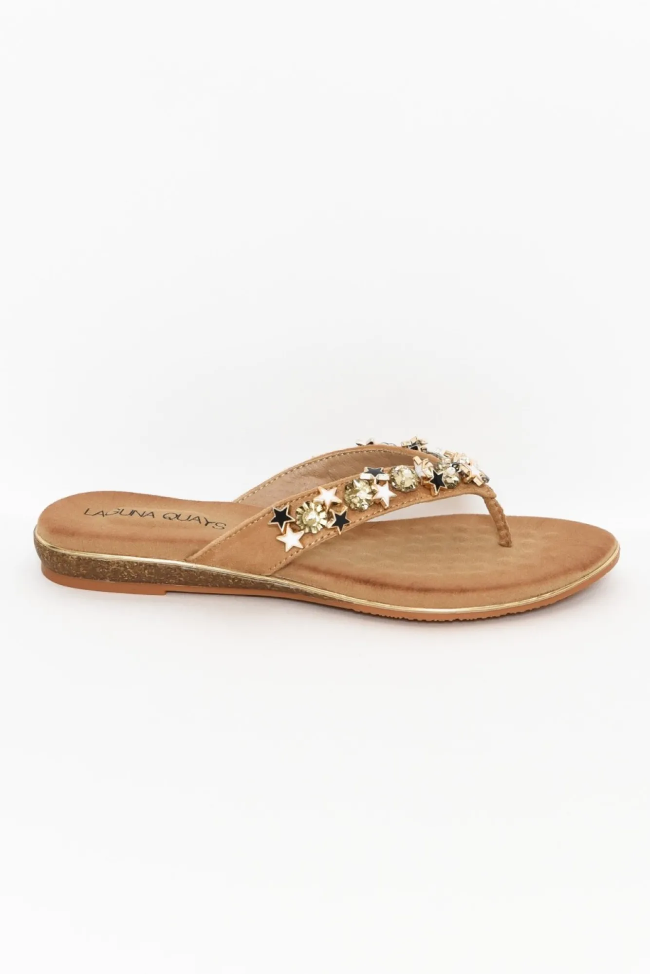 True To Size: Pick The Size You Would Normally Buy N Fit: StandardNelevate Any Outfit With These Gorgeous Sparkly Slides Nclassic Thong Style Design With A Subtle Heel Nstylish Tan Upper With Stunning Star And Crystal Embellishments Along Straps Ncushioned Insole For All-Day Comfort Ntextured Non-Slip Sole Nlovely Brown Heel With Gold Detailing NNupper: SyntheticNNlining: SyntheticNsole: SyntheticNheel Height: 2.2Cm Nshoe Care:To Clean Use A Damp Cloth And Spot Clean Only The Affected Areas.