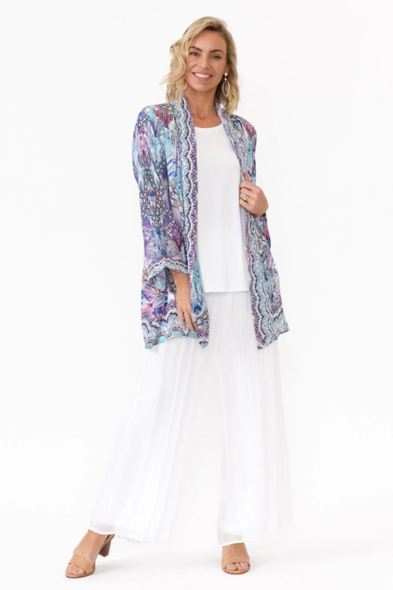 Be the first to review “Jackets<Fashion Spectrum Zahara Blue Silk Short Kimono” Cancel reply
