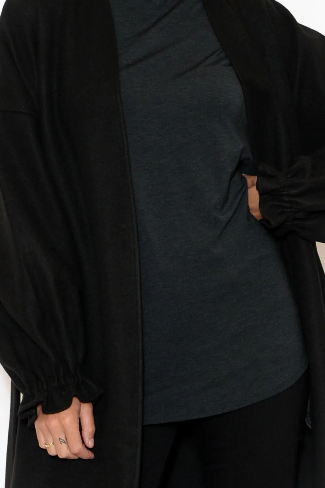 Fit: True To Size. Refer To Size & Fit Tab Below For Specific Size Recommendation NNfabric: Polyester/WoolNthis Thick Wool Coat Is A Winter Wardrobe Staple With Its Ultra Warm And Soft Design In A Flattering SilhouetteNcollarless, Open Front Design NNfull Length Statement Sleeve With Dainty Elasticised Scrunch CuffNNslimline Cut – Cinch In At Waist With Tie For A Figure-Defining LookNNtwo Slanted Pockets At The HipNNsleek, Straight HemlineNNstyle Falls Below The KneeNNNcare: Dry Clean RecommendedNNcolour: Classic Black