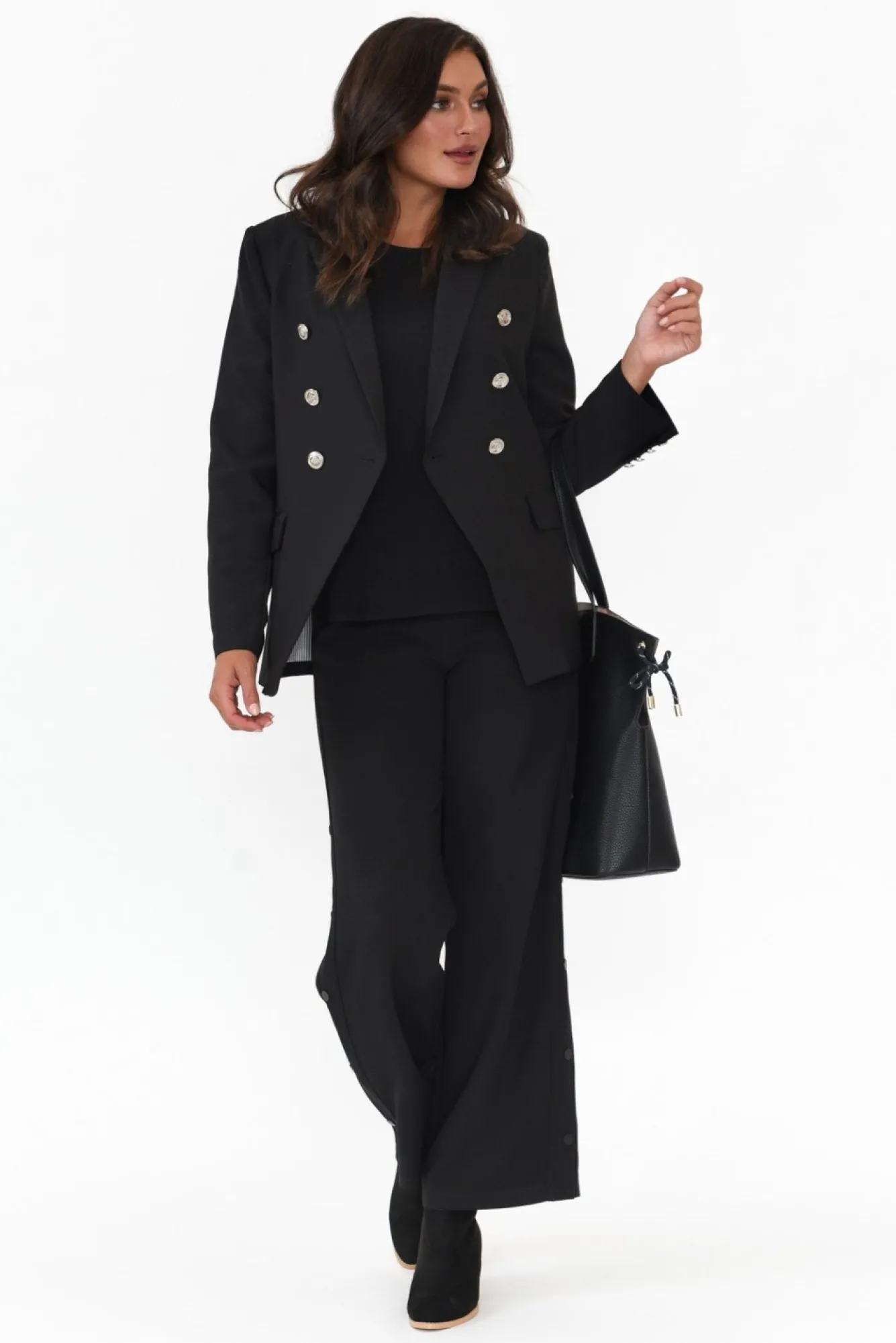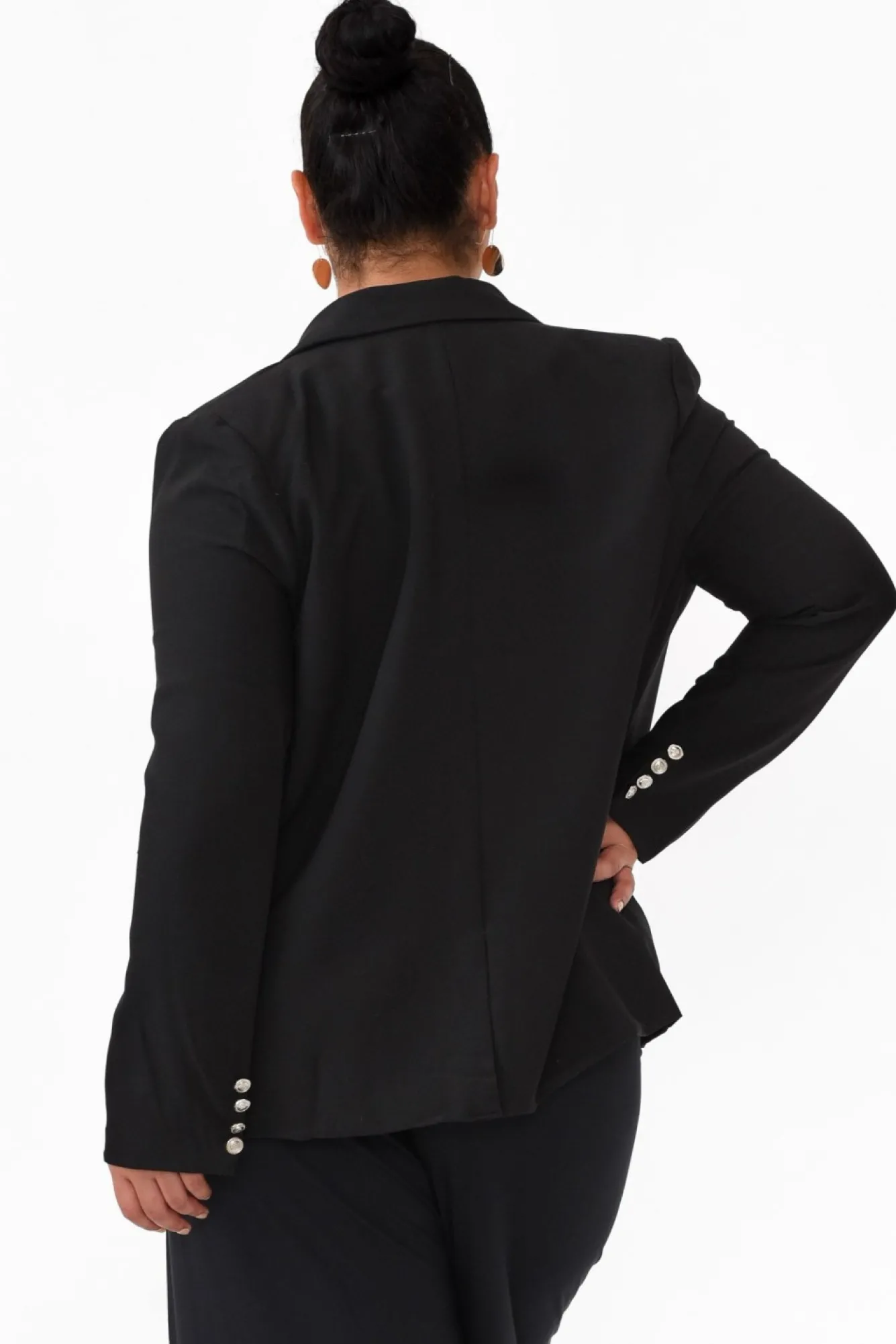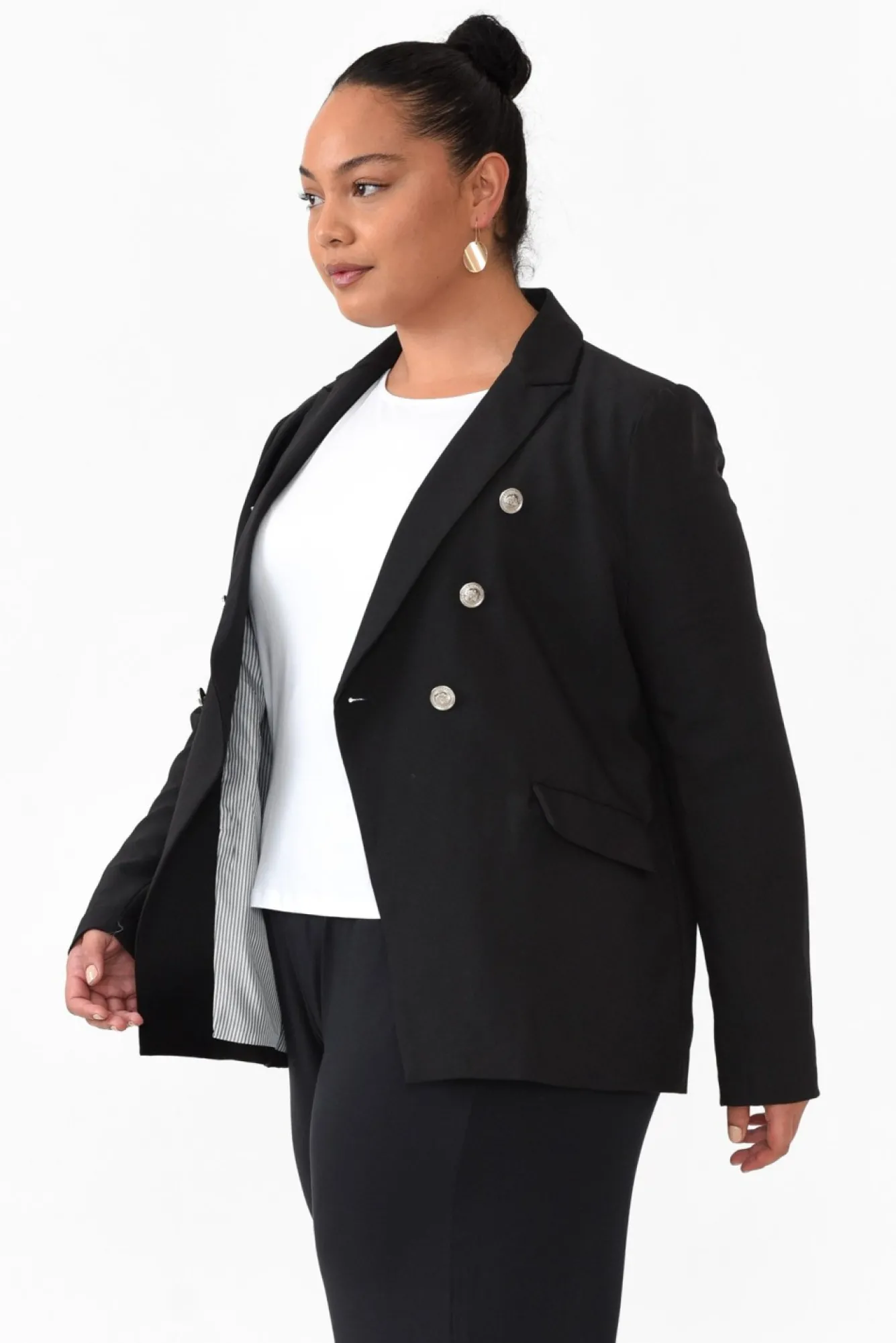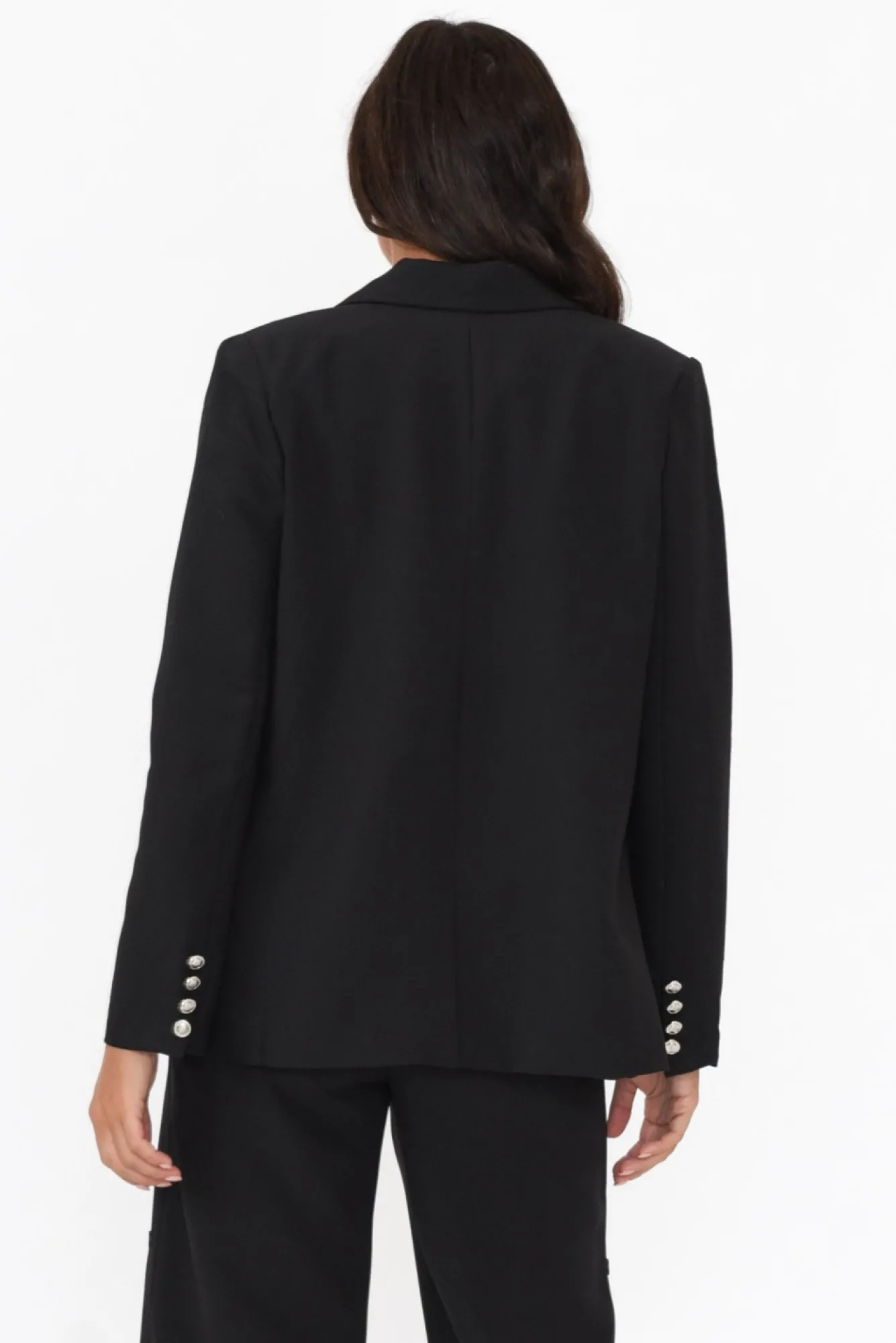 Fit: True To Size. Refer To Size & Fit Tab Below For Specific Size RecommendationNNfabric: Main: 78% Polyester, 18% Viscose, 4% Elastane Lining: 100% PolyesterNclassic Midweight Blazer With A Silky Feel Lining NNsharp Collared Neckline With Notched LapelsNshoulder Pads Create A Refined Boxy Silhouette Ndouble-Breasted Style Featuring Embossed Silver ButtonsNtwo Functional Front PocketsNfull-Length Straight SleevesNfalls Below The Hips NNNcare: Cool Gentle Hand Wash RecommendedNNcolour: Timeless Black
