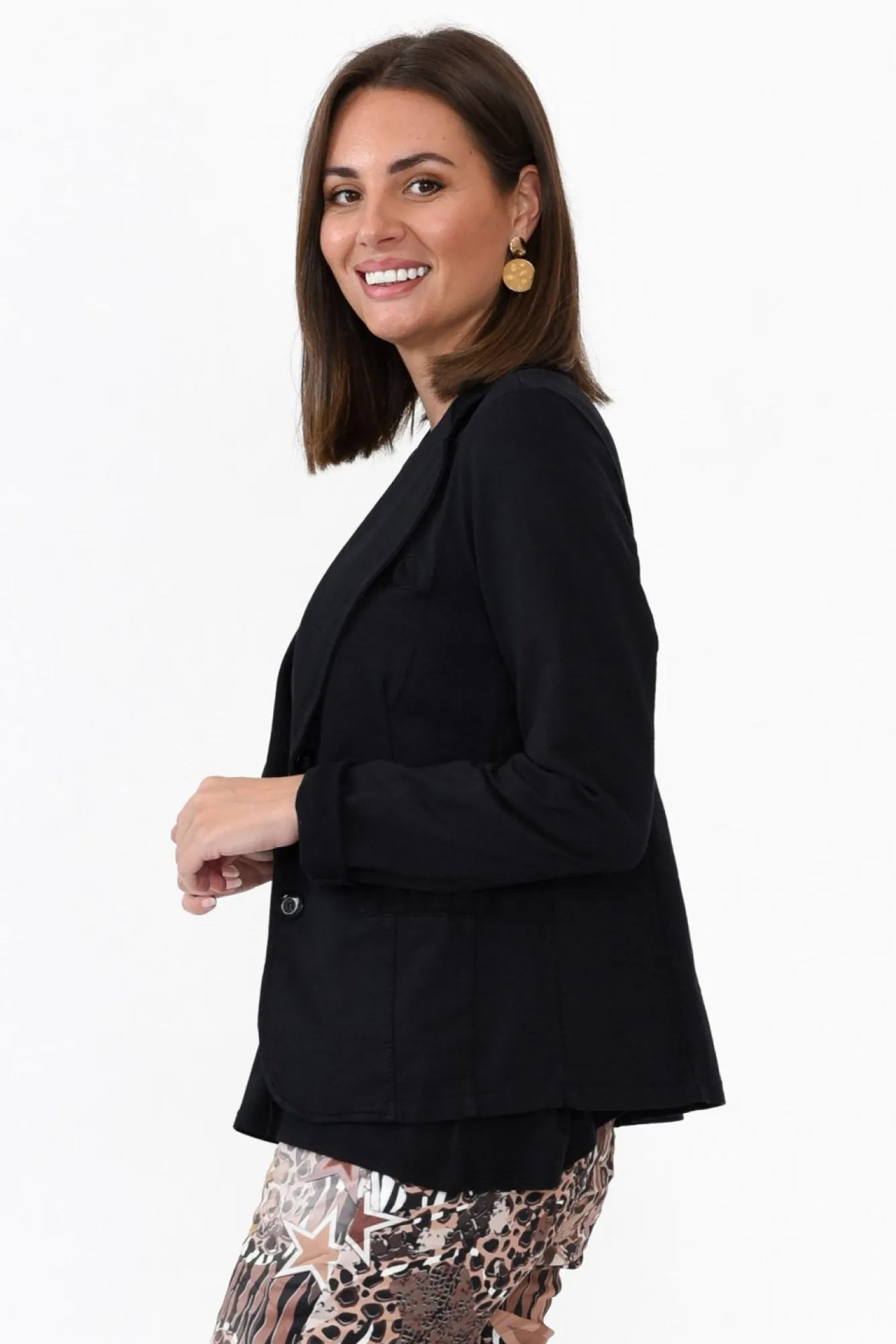 Jackets<Italian Star Maha Black Cotton Relaxed Blazer