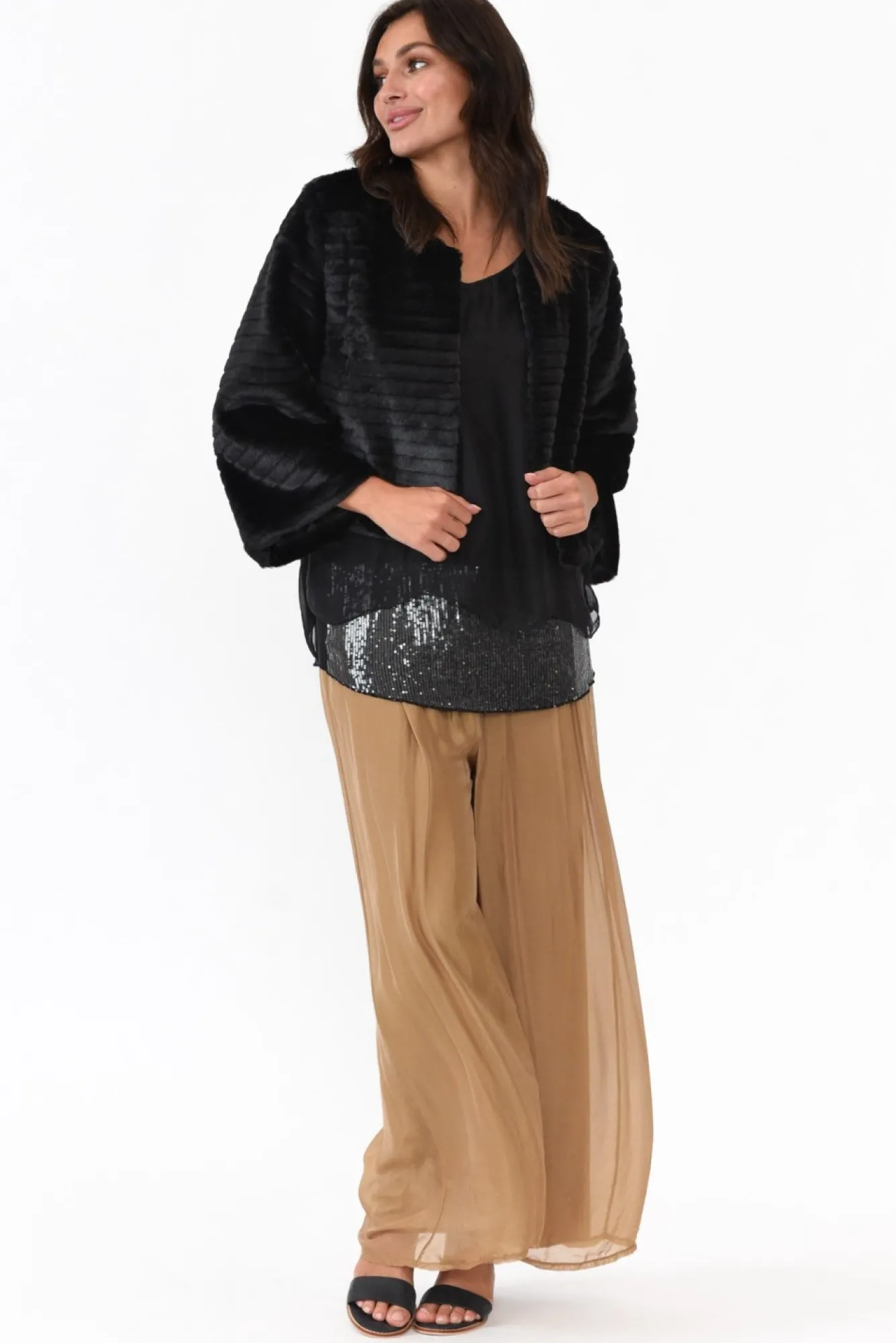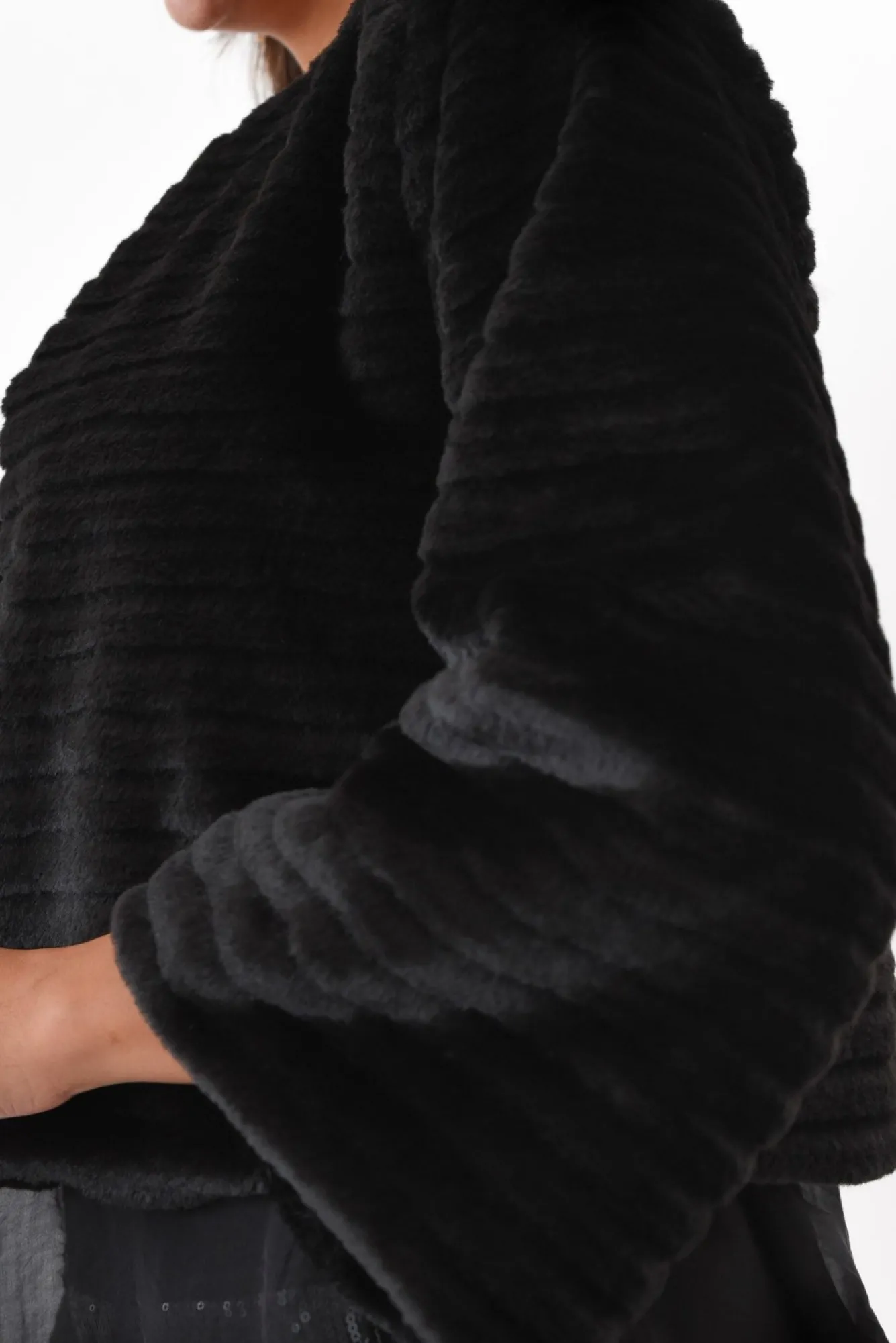 Fit: True To Size. Refer To Size & Fit Tab Below For Specific Size RecommendationNNfabric: 100% Polyester Ncrafted In Italy From Cosy Ultra-Soft Faux Fur Fabric With A Comfortable Smooth LiningNhigh Round Neckline Skims Above The Collarbones Ncollarless, Open-Style Design Nstraight 3/4 Length Sleeves Work To Complement The Refined Silhouette Nfalls To Versatile Crop Length For Easy Layering Over Event WearNNNcare: Cool Gentle Hand Wash RecommendedNNcolour: Midnight Black Shade