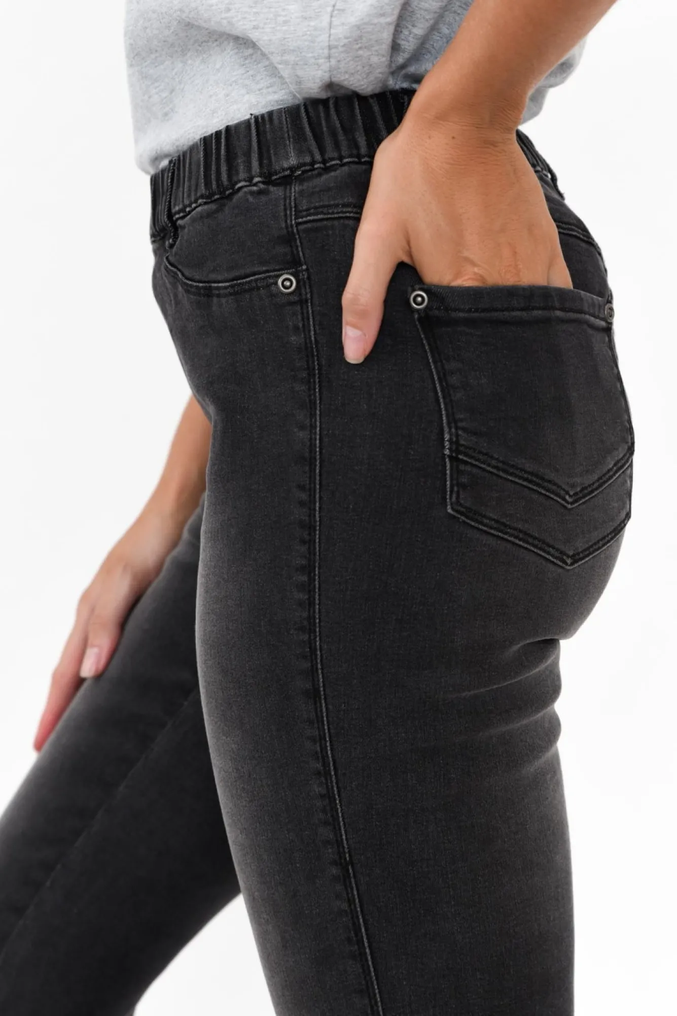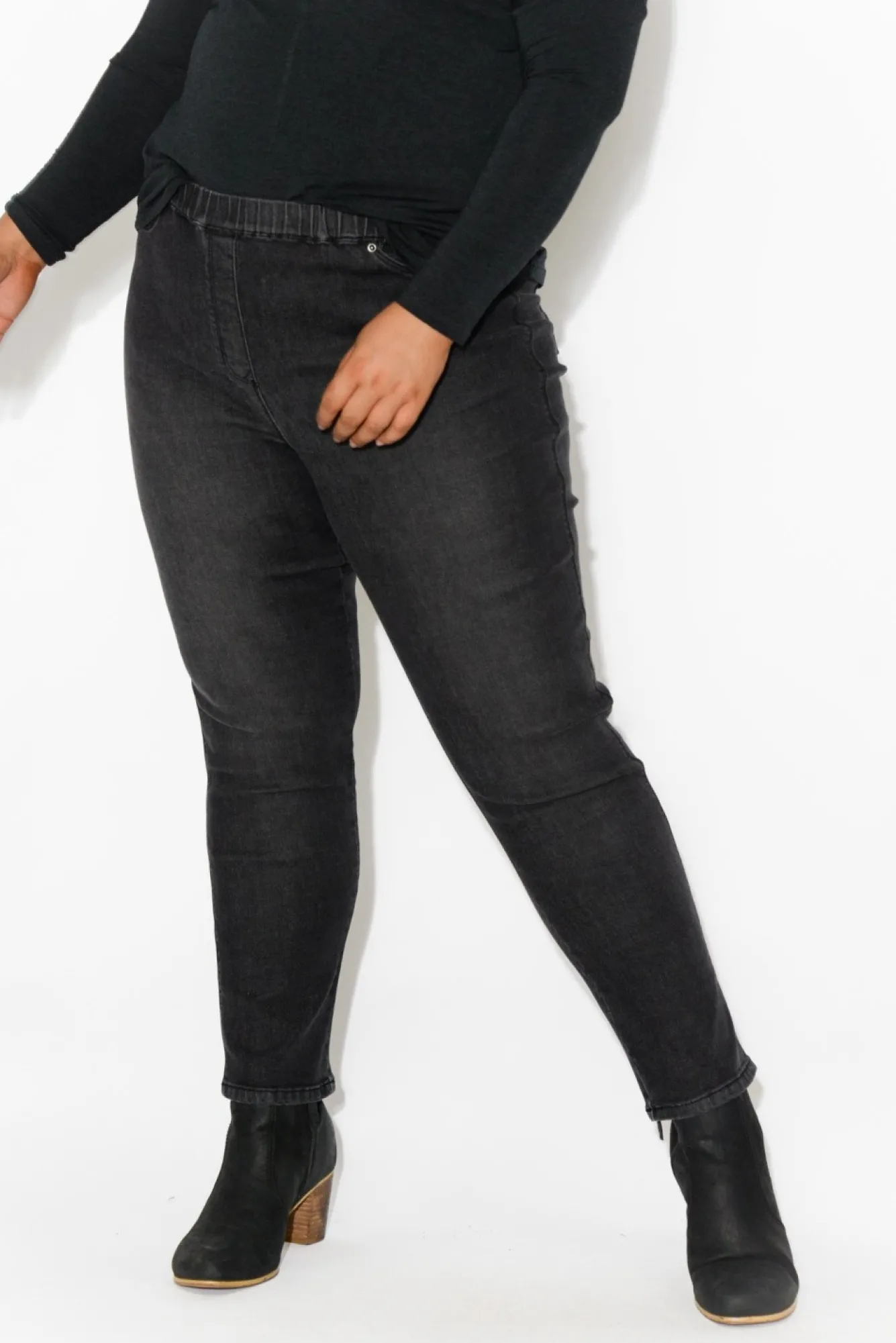 Fit: True. Refer To Size & Fit Tab Below For Specific Size RecommendationNNfabric: 65% Cotton, 33% Polyester, 2% SpandexNmidweight, Gorgeously Soft And Breathable, And Stretchy FabricNstretch Denim Is Perfect For All Day WearNhigh Rise Elasticised Waistband Hides Lumps And BumpsNtwo Back Pockets And Belt Loops For A True Jean LookNfaux Fly And Front Pocket DetailsNtrendy Straight-Leg Design Is Slimming And ComfortableNfull Length Hits Ankle BonesNNcare: Cool Gentle Hand Wash RecommendedNNcolour: Washed Black Shade