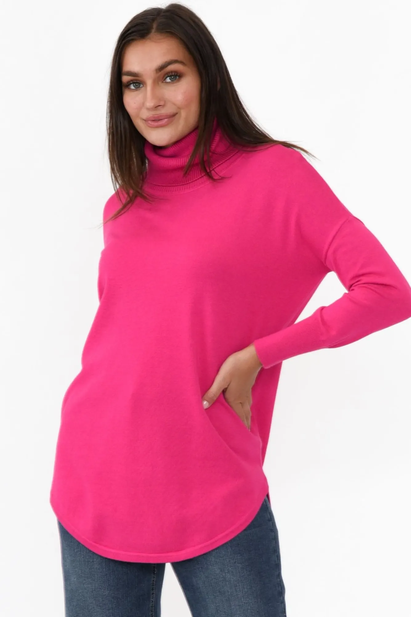 Fit: True To Size. Refer To Size & Fit Tab Below For Specific Size Recommendation NNfabric: Viscose/Nylon Nlightweight And Delicate Knit With A Comfortable Stretch And Silky Soft Hand FeelNrolled Turtleneck With Ribbed DetailNfull-Length Sleeve With A Tapered CuffNNstraight Silhouette In A Relaxed FitNNcurved Hem Falls To The HipsNNNcare: Cool Gentle Hand Wash RecommendedNNcolour: Fushcia Pink