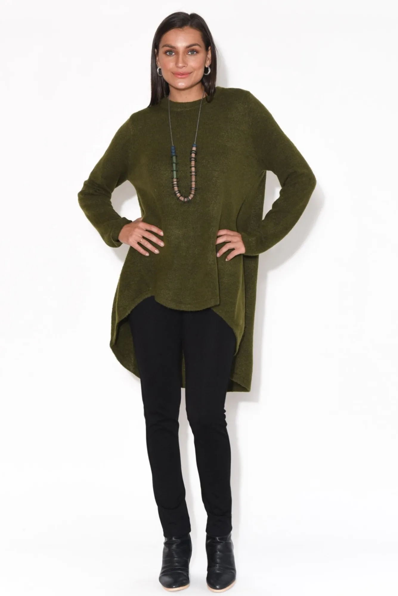 Fit: True To Size. Refer To Size & Fit Tab Below For Specific Size RecommendationNNfabric: 58% Acrylic, 30% Polyester, 6% Elastane, 4% Wool, 2% AlpacaNwarm And Cozy, Luxurious Feeling Knit Jumper With Slight StretchNrounded Neckline With Ribbed DetailingNNfull-Length SleevesNNstrong A-Line SilhouetteNNscalloping On The Front Of The Hi-Lo Hemline Creates A Unique Wave LookNback Hemline Falls Below The HipsNNNcare: Cool Gentle Hand Wash RecommendedNNcolour: Deepmossy Green Shade