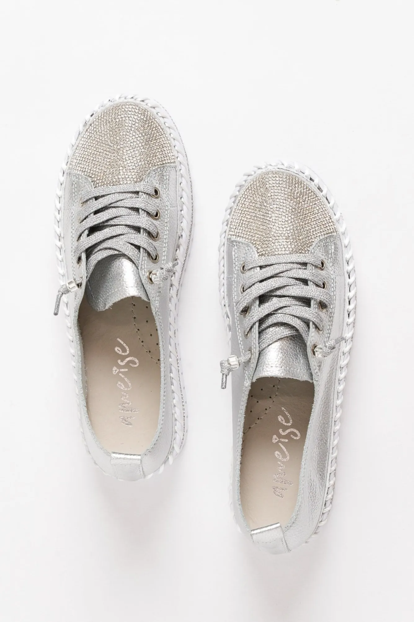 Be the first to review “Leather Sneakers<Ameise Sky Silver Leather Diamante Sneaker” Cancel reply