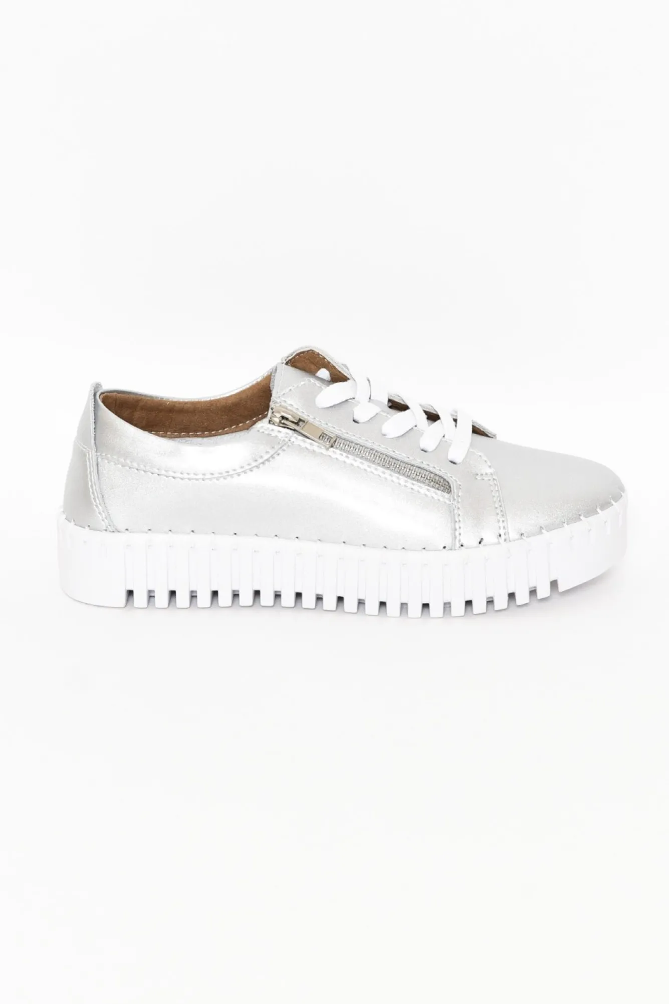 Runs Small: We Recommend Sizing Up.Nfit: This Style Is Part Of The Multi-Fit Series And Features Removable Insoles For A Narrow To Wide FitNadd A Timeless Touch Of Silver To Any Outfit With These Ultra-Comfortable And Stylish Sneakers!Nfunctional Zip Entrance With Adjustable Laces For Personalised Comfort NNtwo Removable Insoles – Pick Between The Luxuriously Cushioned Insole For Arch Support Or The Lightweight And Thin Insole For A Wider FootNinsoles Can Also Be Removed And Replaced With Personalised OrthoticsNNfun Chunky White Sole With Unique Stitching Detail And A Grooved Base To Reduce Slipping NNupper: LeatherNNsock: LeatherNoutsole: SyntheticNheel Height: 3.2CmNshoe Care: Use A Water And Stain Repellent To Protect Before Wearing. To Clean Use A Damp Cloth And Spot Clean.