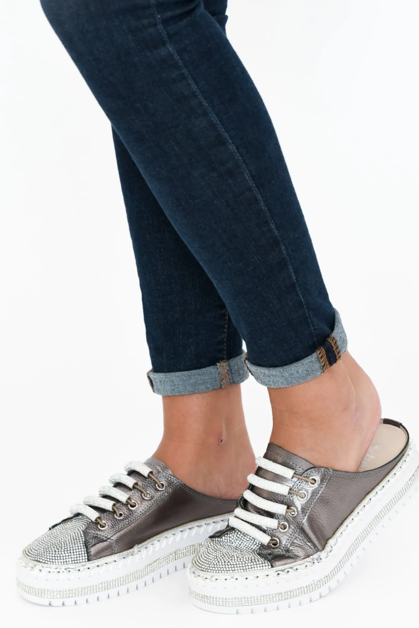 Leather Sneakers<Beaute Fashion Dawson Charcoal Leather Diamante Mule Sneaker