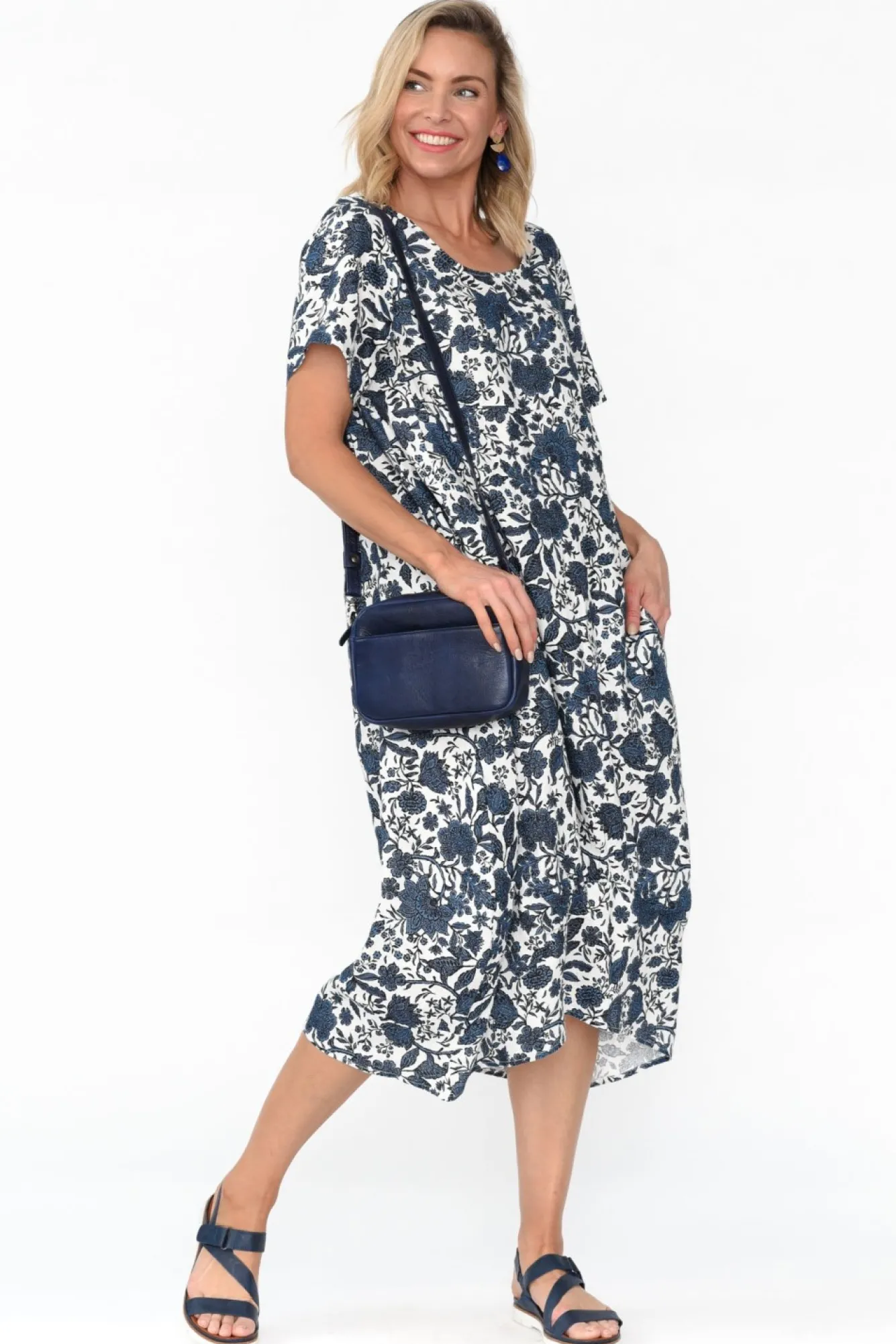 Linen Dresses<Cali and Co Mattie Navy Garden Linen Dress