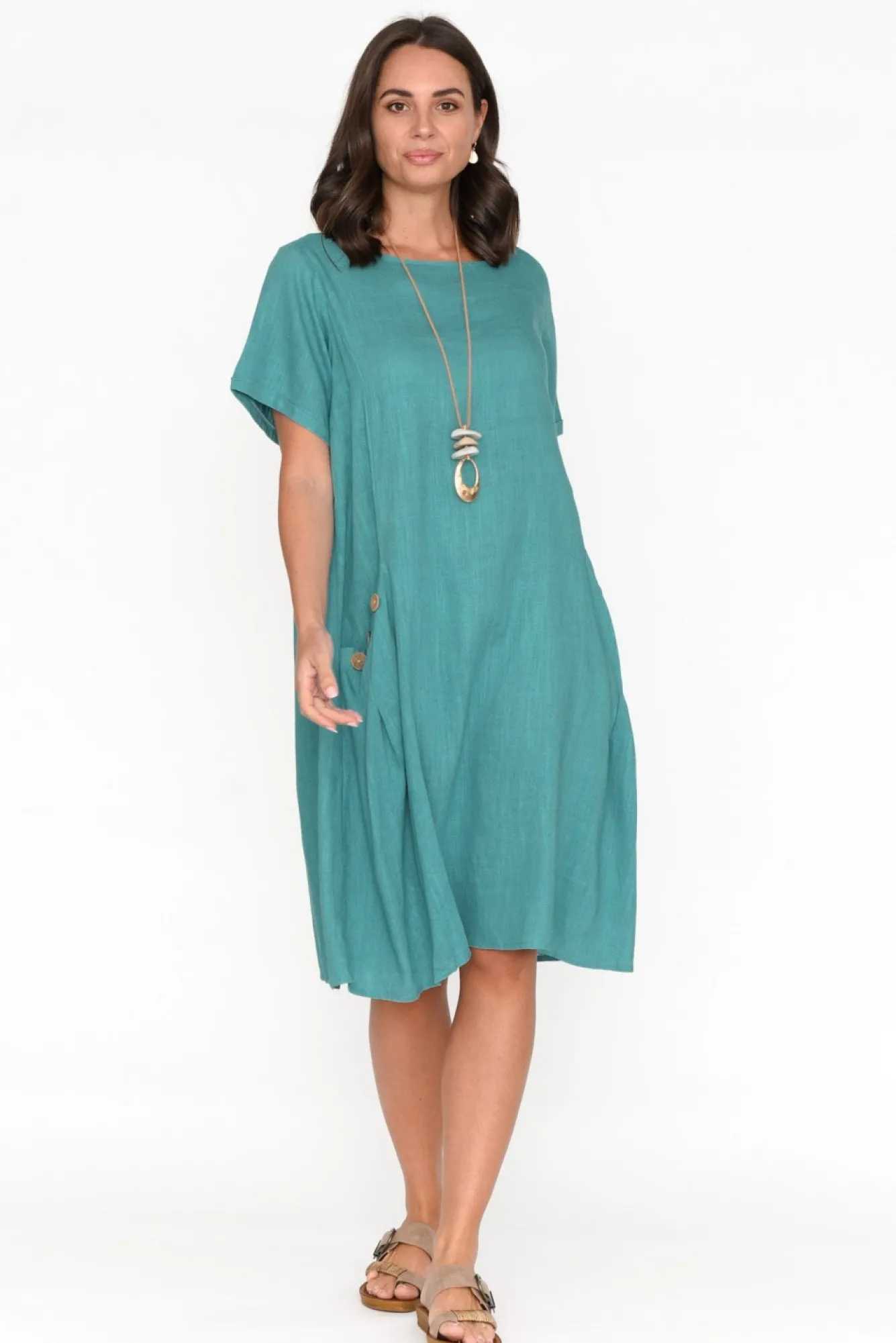 Fit: True To Size. Refer To Size & Fit Tab Below For Specific Size RecommendationNNfabric: 65% Linen, 35% CottonNbreezy, Lightweight And Non-Stretch Linen Cotton Blend Fabric Designed With A Smooth Woven Hand Feel NNsimple Round Neckline Skims The Collarbones NNstraight Half-Length Sleeves With A Fixed Rolled Cuff Detail NNversatile, Flowy A-Line Silhouette NNtwo Statement Front Pockets Defined By Wooden Button Detailing NNhemline Falls To Easy-To-Wear Knee LengthNNcare: Cool Gentle Hand Wash RecommendedNNcolour: Lovely Teal Hue