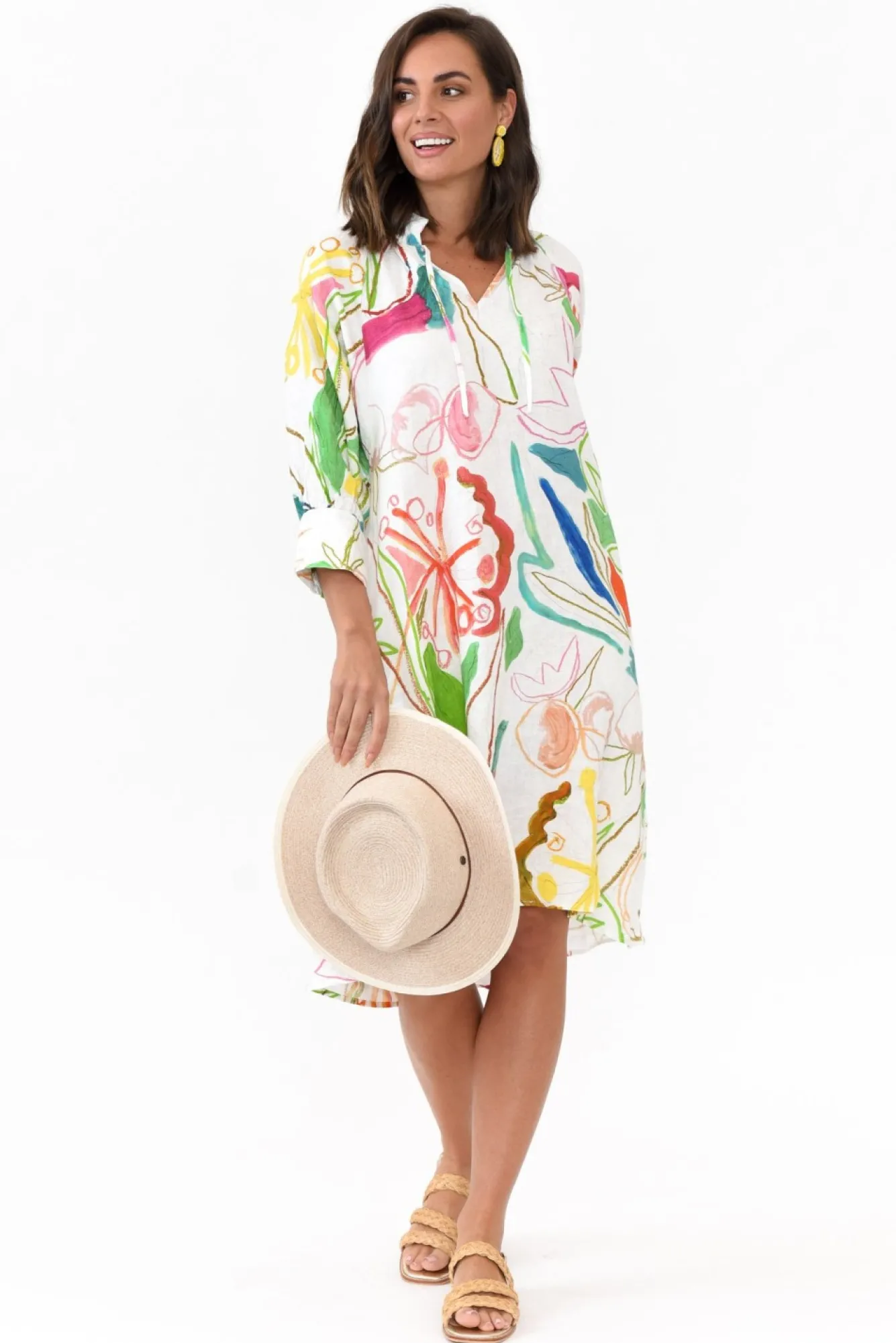 Linen Dresses<Wear Colour Bacall White Abstract Linen Dress