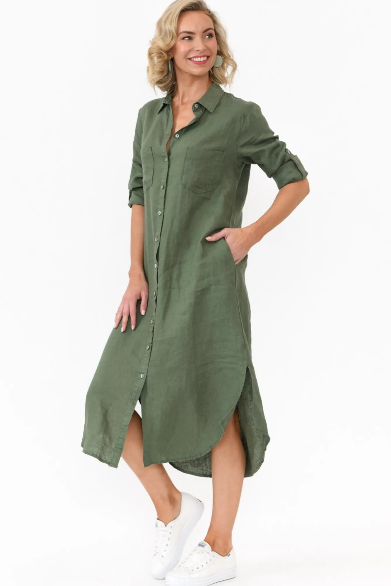 Fit: True To Size. Refer To Size & Fit Tab Below For Specific Size RecommendationNNfabric: 100% LinenNbreezy Lightweight And Non-Stretch Linen Offering Wonderful Breathability And A Natural Textured Hand Feel NNcrisp Collar Complements The Button-Down Front Nfull-Length Sleeves Can Be Easily Rolled Up And Secured With Button Fastening NNthrow-On-And-Go Relaxed Shirt Dress Design – A Transanal Wardrobe Staple!NNtwo Front Feature Pockets On The Bust And Two Discreet Side Seam PocketsNcurved Hi-Lo Hemline With Side Splits For Ease Of Movement NNfalls Below Knee LengthNNcare: Cool Gentle Hand Wash RecommendedNNcolour: Washed Fern Green Shade