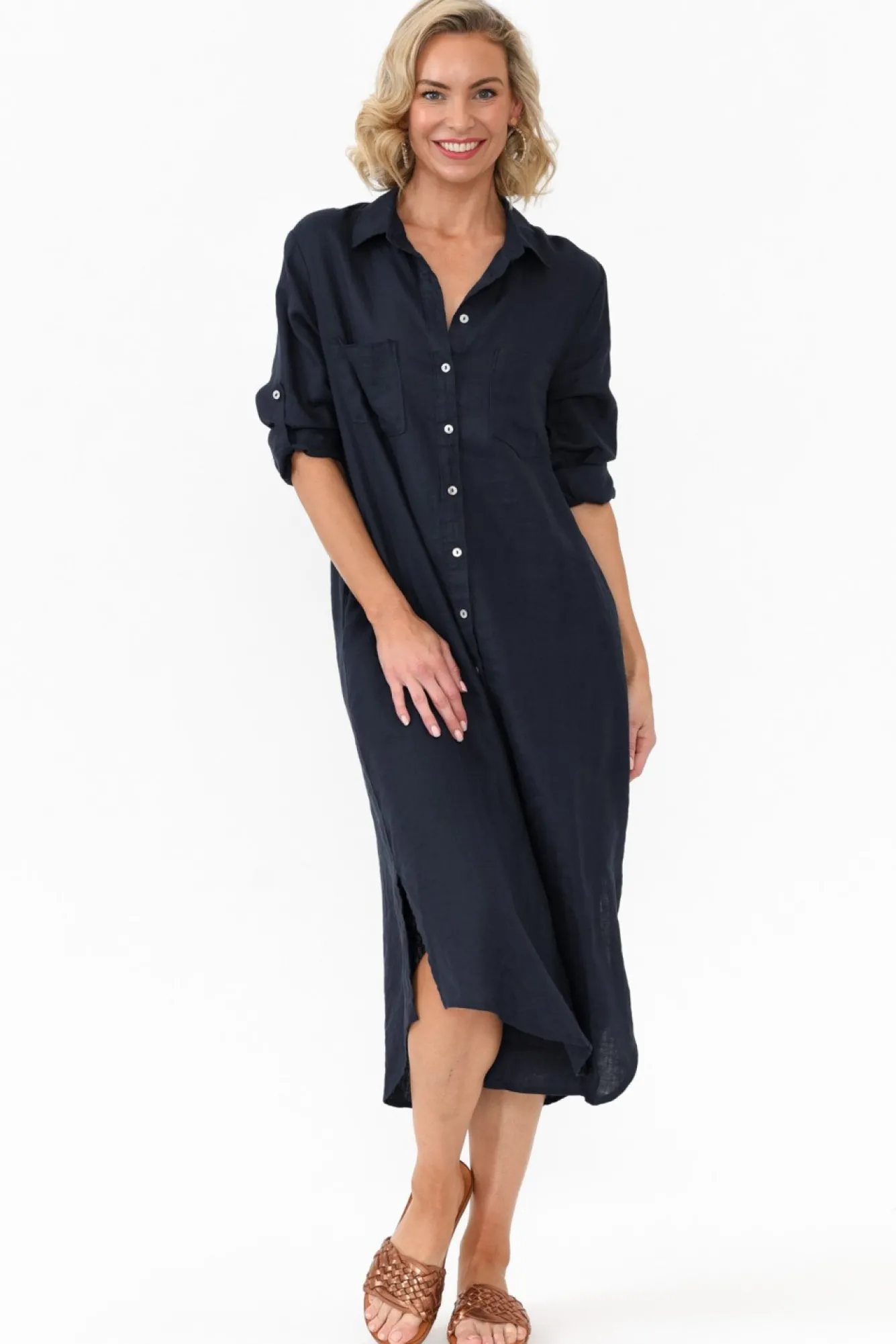 Fit: True To Size. Refer To Size & Fit Tab Below For Specific Size RecommendationNNfabric: 100% LinenNdesigned Using Pure Linen With A Classic Woven Texture And Boasting Ultra-Breathable, Lightweight And Non-Stretch QualitiesNcrisp Collar Complements The Button-Down FrontNfull-Length Sleeves Can Be Easily Rolled Up And Secured With Button Fastening NNtranseasonal Shirt Dress Style, Designed With Small Side Splits For A Breezy Look NNtwo Front Feature Pockets On The Bust And Two Discreet Side Seam PocketsNcurved Hi-Lo Hemline Falls Below Knee LengthNNNcare: Cool Gentle Hand Wash RecommendedNNcolour: Sophisticated Navy Blue