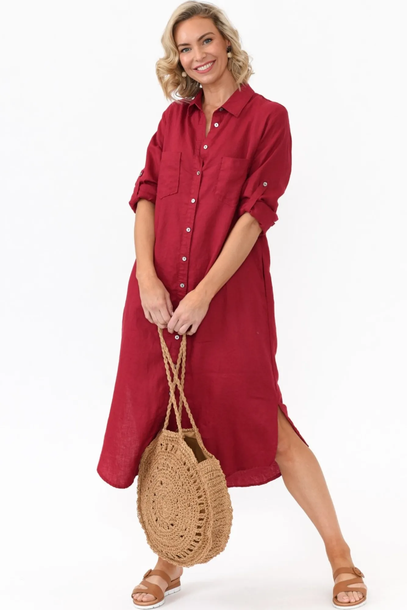 Fit: True To Size. Refer To Size & Fit Tab Below For Specific Size RecommendationNNfabric: 100% LinenNa Versatile Shirt Dress Made From Ultra-Breathable, Lightweight And Non-Stretch Linen With A Classic Woven Hand FeelNrefined Silhouette Enhanced By Sharp Collar And Button-Down FrontNfull-Length Sleeves Can Be Easily Rolled Up And Secured With Button Fastening NNtranseasonal Shirt Dress Style, Designed With Small Side Splits For A Breezy Look NNtwo Front Feature Pockets On The Bust And Two Discreet Side Seam PocketsNcurved Hi-Lo Hemline Falls Below Knee LengthNNNcare: Cool Gentle Hand Wash RecommendedNNcolour: Rose Red Shade