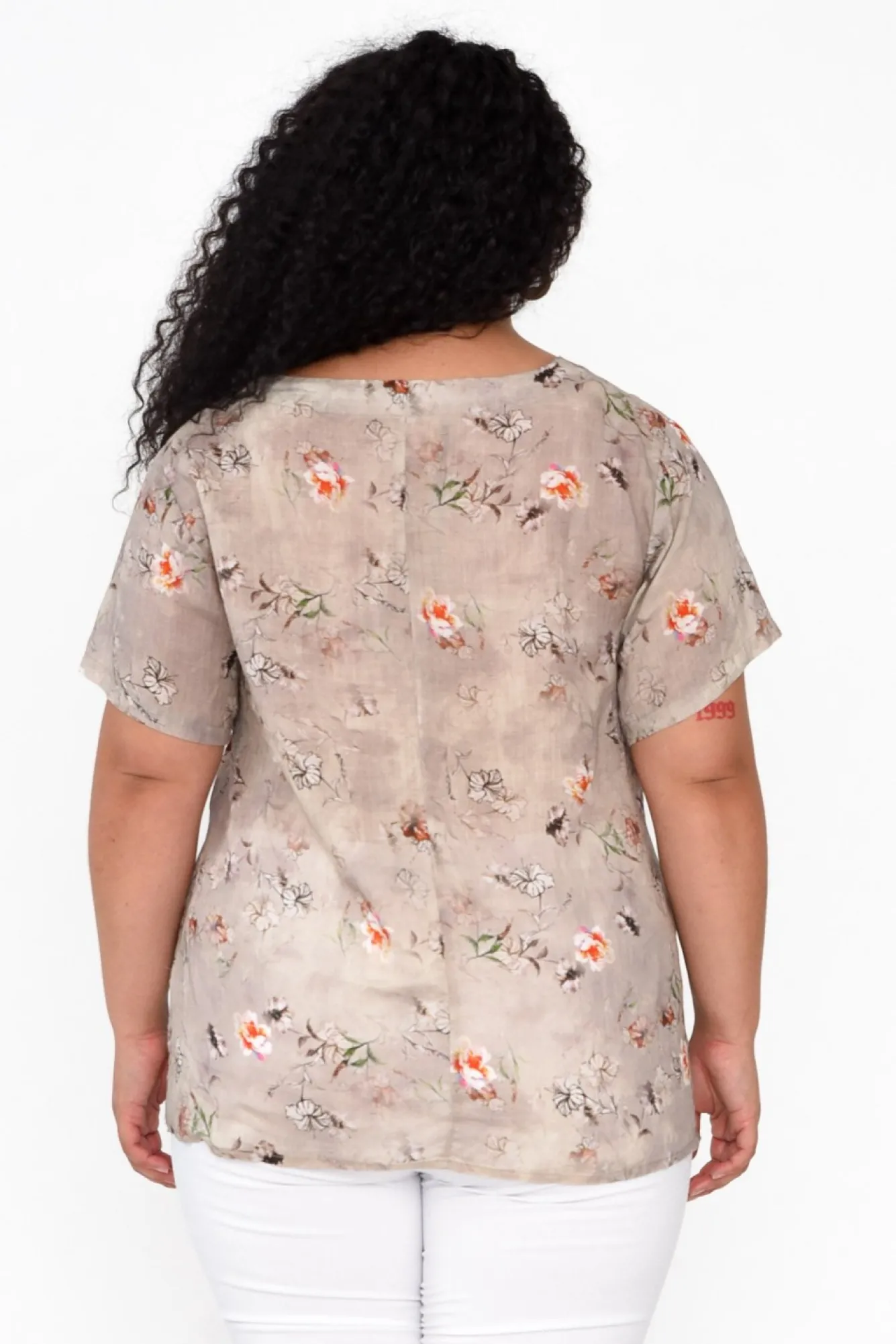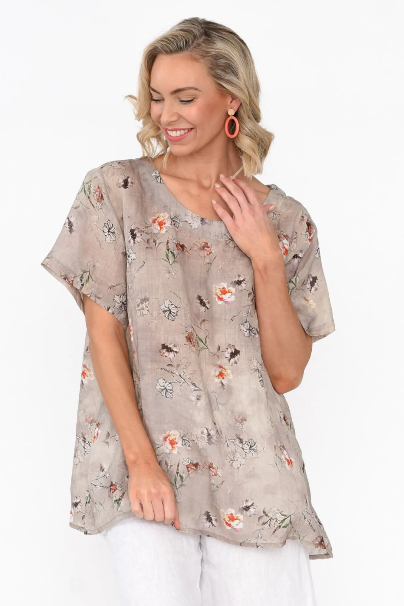 Fit: Measurements May Vary Between Colourways. Refer To Size & Fit Tab Below For Specific Size RecommendationNNNfabric: 100% LinenNlightweight And Breathable Linen With A Smooth Finish And Subtle Sheen Nslightly Sheer Fabric, We Recommend Wearing Nude Undergarments Nround Banded Neckline NNshort, Tee-Style Sleeves NNslight A-Line Silhouette Creates A Swing Effect At The HipsNstraight Hem Falls To The HipsNNNcare: Cool Gentle Machine Wash RecommendedNNcolour: Beige With A Dainty Floral Overlay NNnote: Fabric Textures May Vary Between Colourways, Please Refer To Individual Product Descriptions.