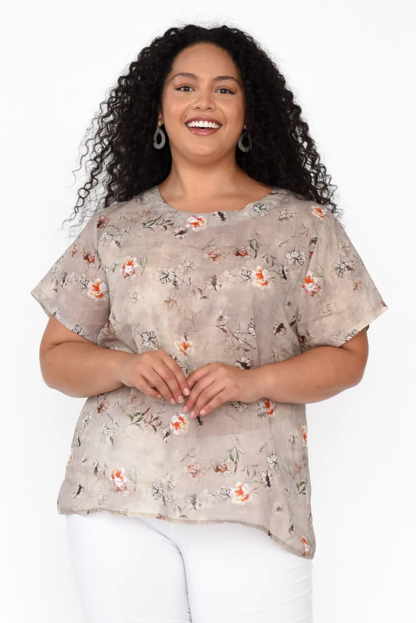 Linen Tops<Cali and Co Baraka Beige Flower Linen Top