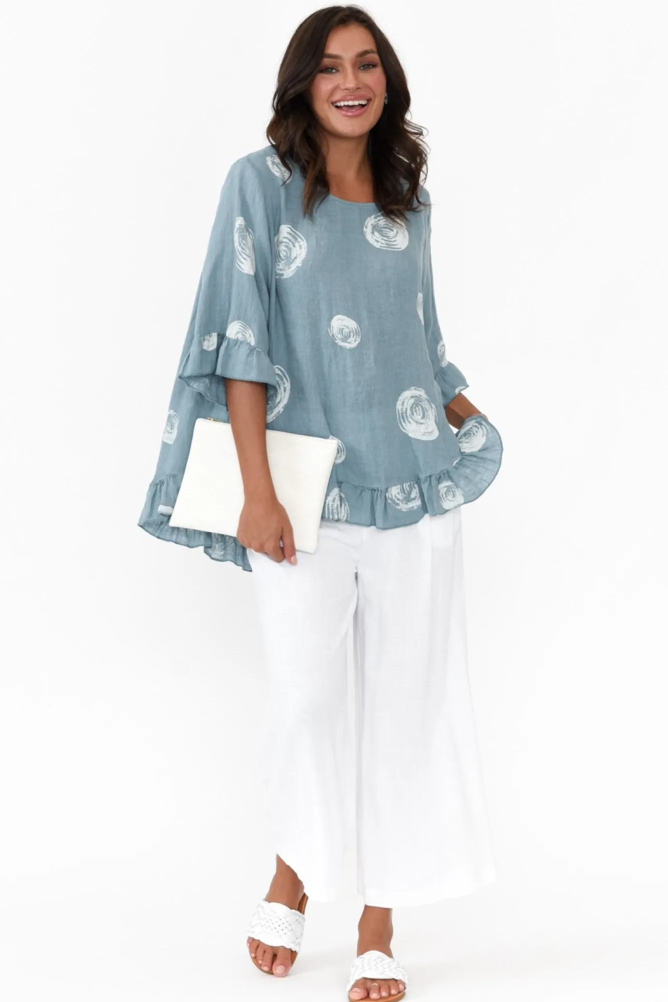 Linen Tops<Cali and Co Fitzgerald Blue Spot Linen Frill Top