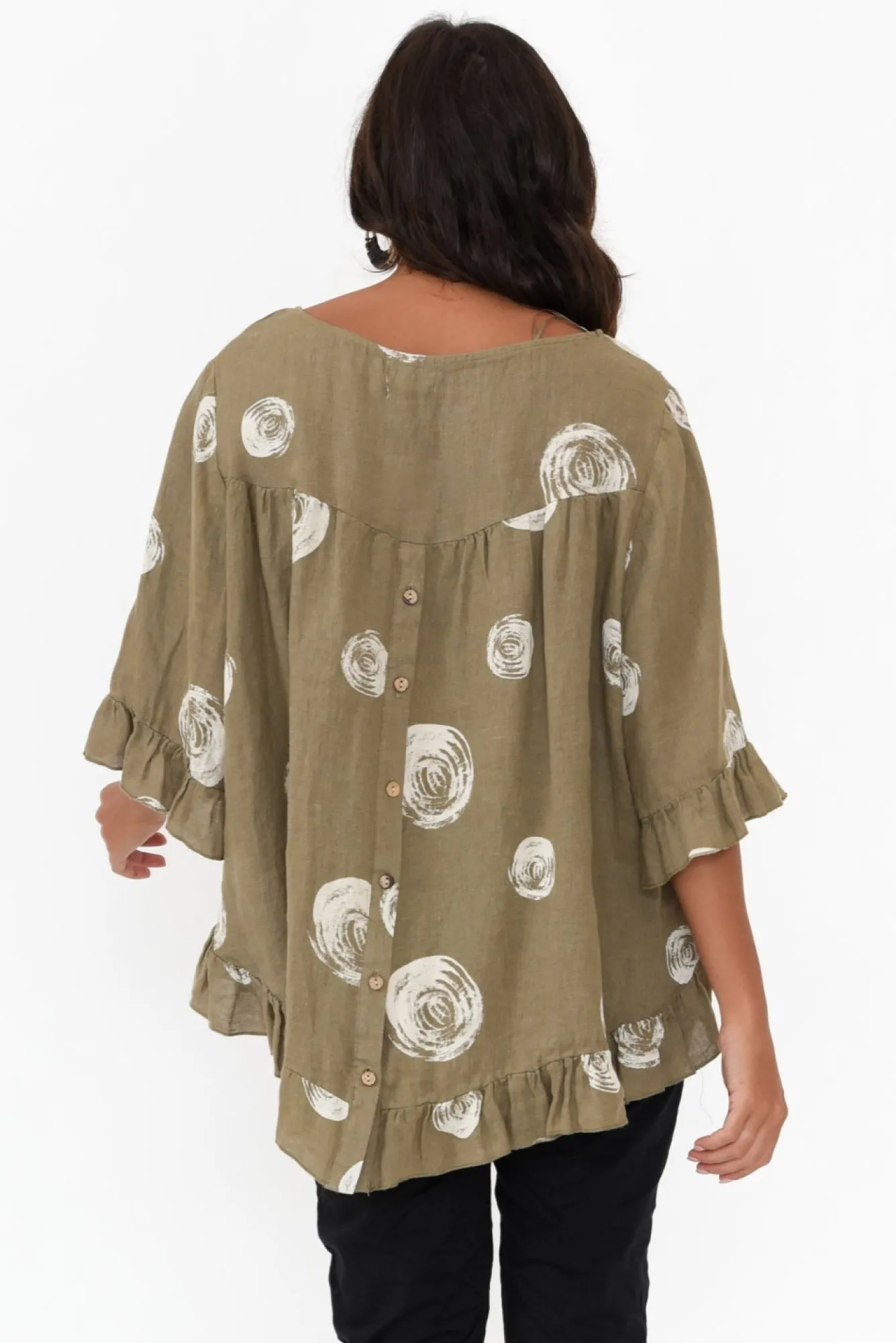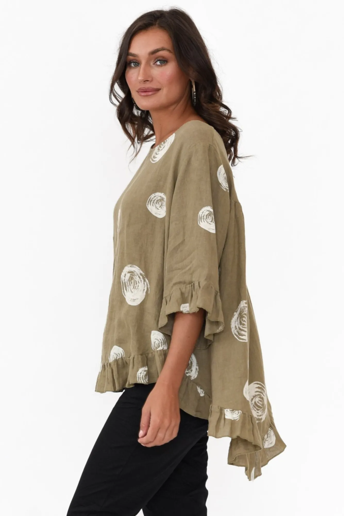 Linen Tops<Cali and Co Fitzgerald Khaki Spot Linen Frill Top