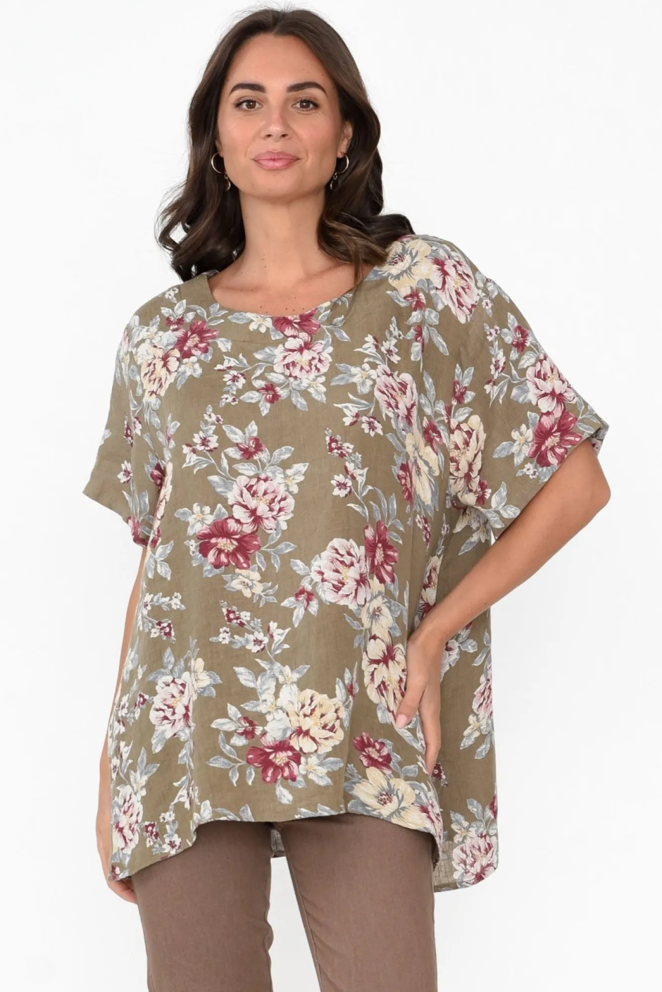 Be the first to review “Linen Tops<Cali and Co Idalia Khaki Blossom Linen Top” Cancel reply