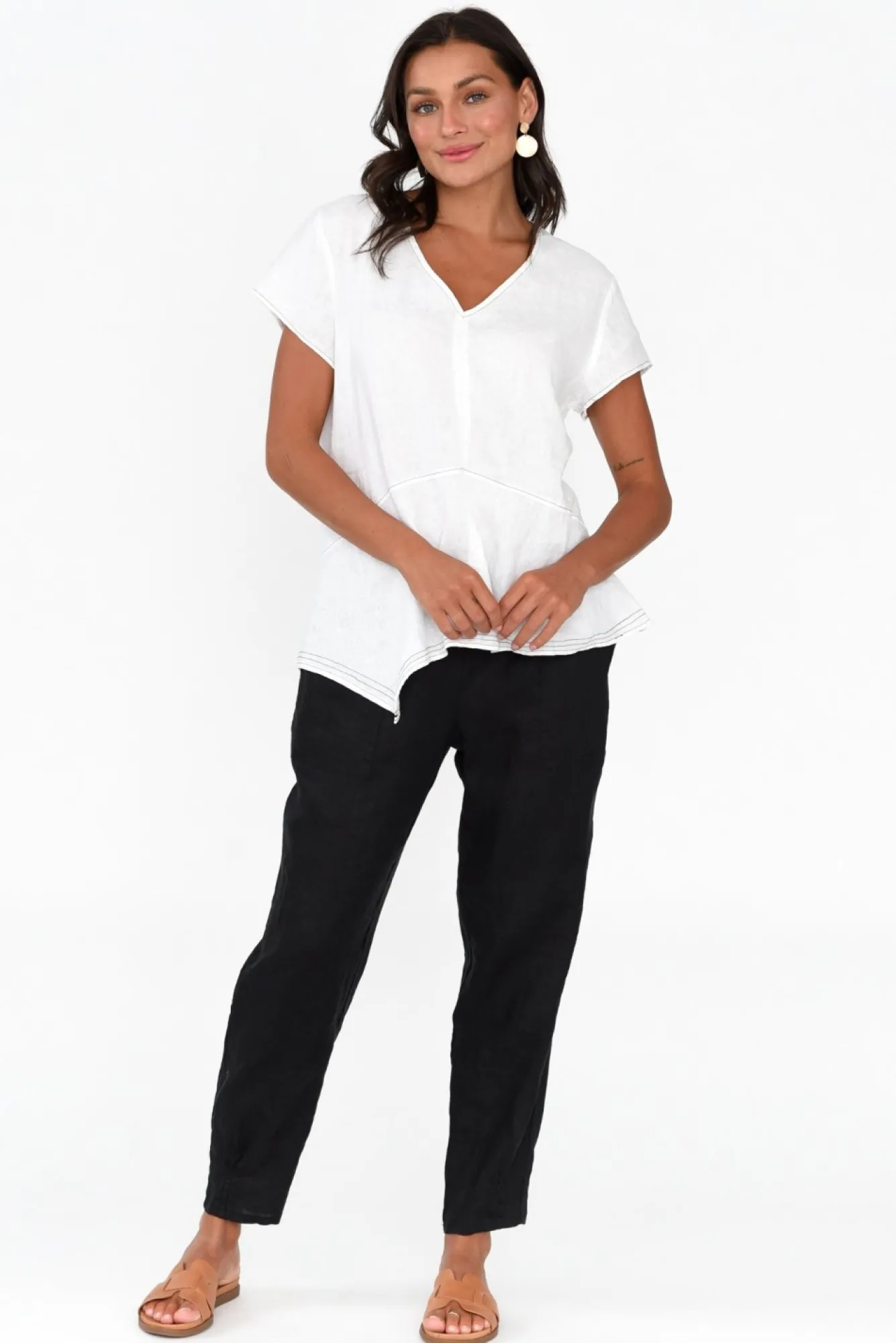 Linen Tops<Cali and Co Lindy White Linen V Neck Top