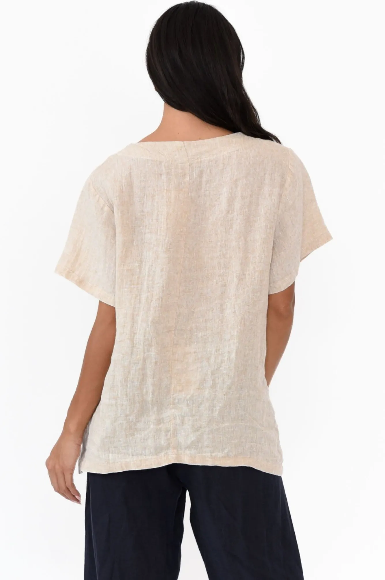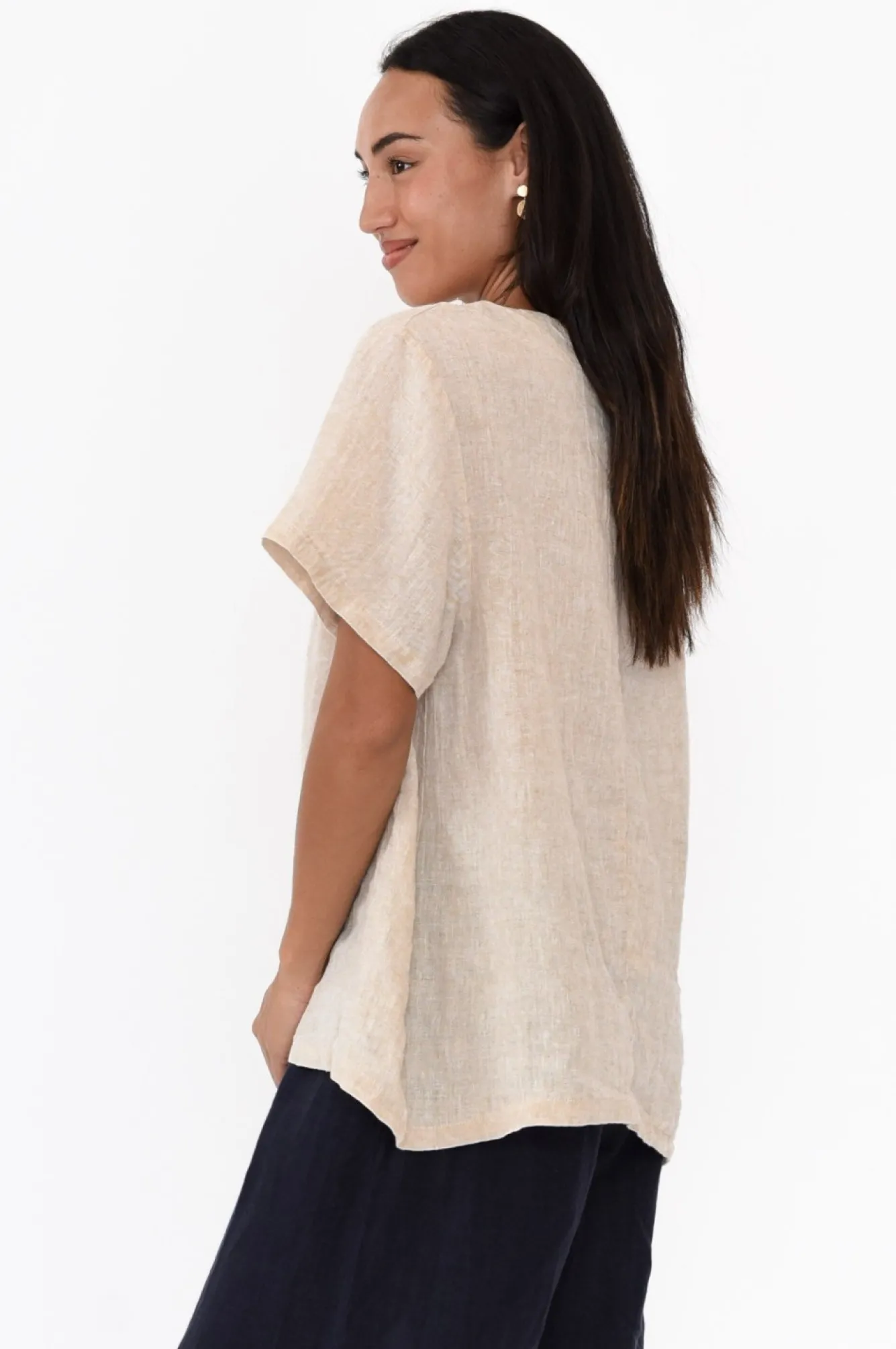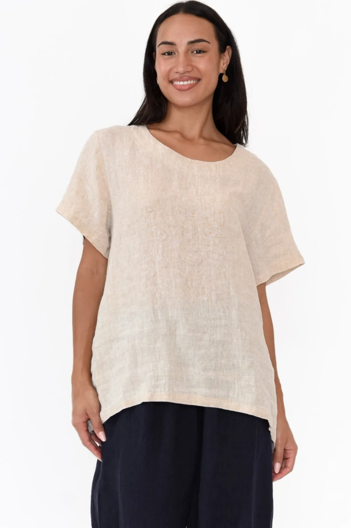 Fit: True To Size. Refer To Size & Fit Tab Below For Specific Size RecommendationNNfabric: 100% LinenNlightweight, Non-Stretch Fabric With Wonderful Breathability And A Classic Woven Hand FeelNNsimple Rounded Neckline With Double-Fold Detail StitchingNNstraight Half-Length Sleeves NNa-Line Silhouette Falls To A Hip-Skimming LengthNNcurved Hem Provides More Coverage Over The HipsNNcare: Cool Gentle Machine Wash RecommendedNNcolour: Soft Beige Shade