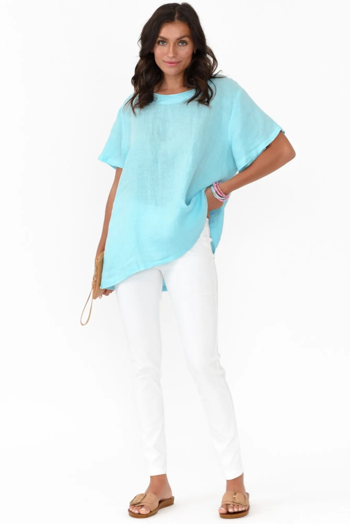Fit: True To Size. Refer To Size & Fit Tab Below For Specific Size Recommendation NNfabric: 100% LinenNeasy, Breezy And Flattering! Introducing Your Next Summer StapleNNrounded Neckline With Double Fold Detail StitchingNNmid-Length Tee-Style SleevesNNa-Line Silhouette Falls To A Hip-Skimming LengthNNcurved Hem Provides More Coverage Over The HipsNNcare: Cool Gentle Machine Wash RecommendedNNcolour: Cool Turquoise Blue Shade