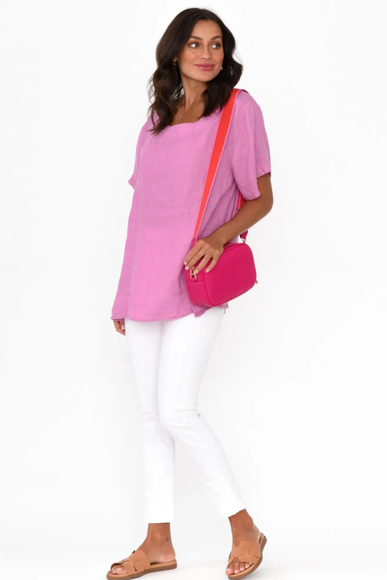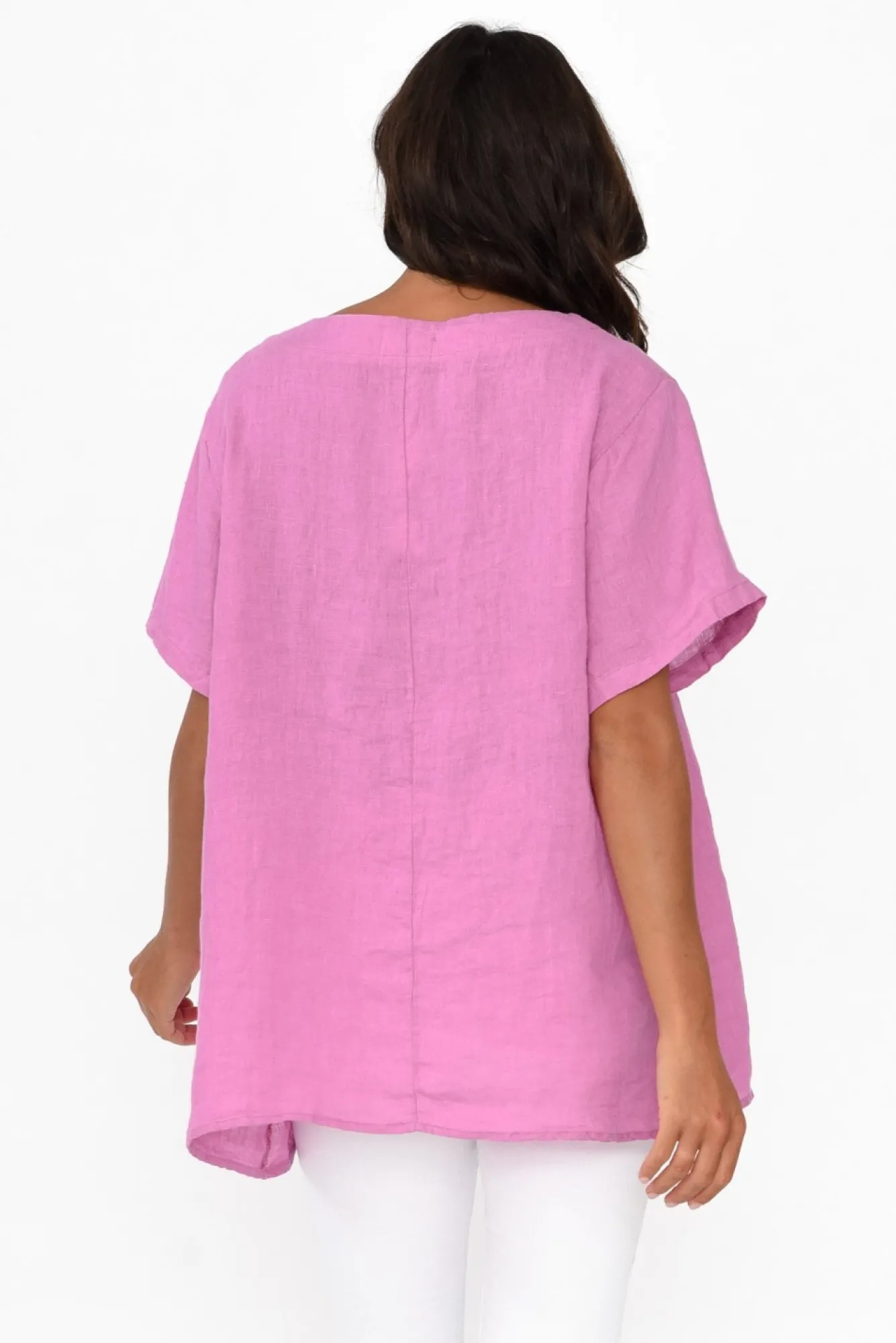 Fit: True To Size. Refer To Size & Fit Tab Below For Specific Size RecommendationNNfabric: 100% LinenNlightweight, Breathable And Non-Stretch Linen With A Signature Woven Feel NNrounded Neckline With Double Fold Detail StitchingNNmid-Length Tee-Style SleevesNNa-Line Silhouette Falls To A Hip-Skimming LengthNNcurved Hem Provides More Coverage Over The HipsNNcare: Cool Gentle Machine Wash RecommendedNNcolour: Gorgeous Light Magenta Shade