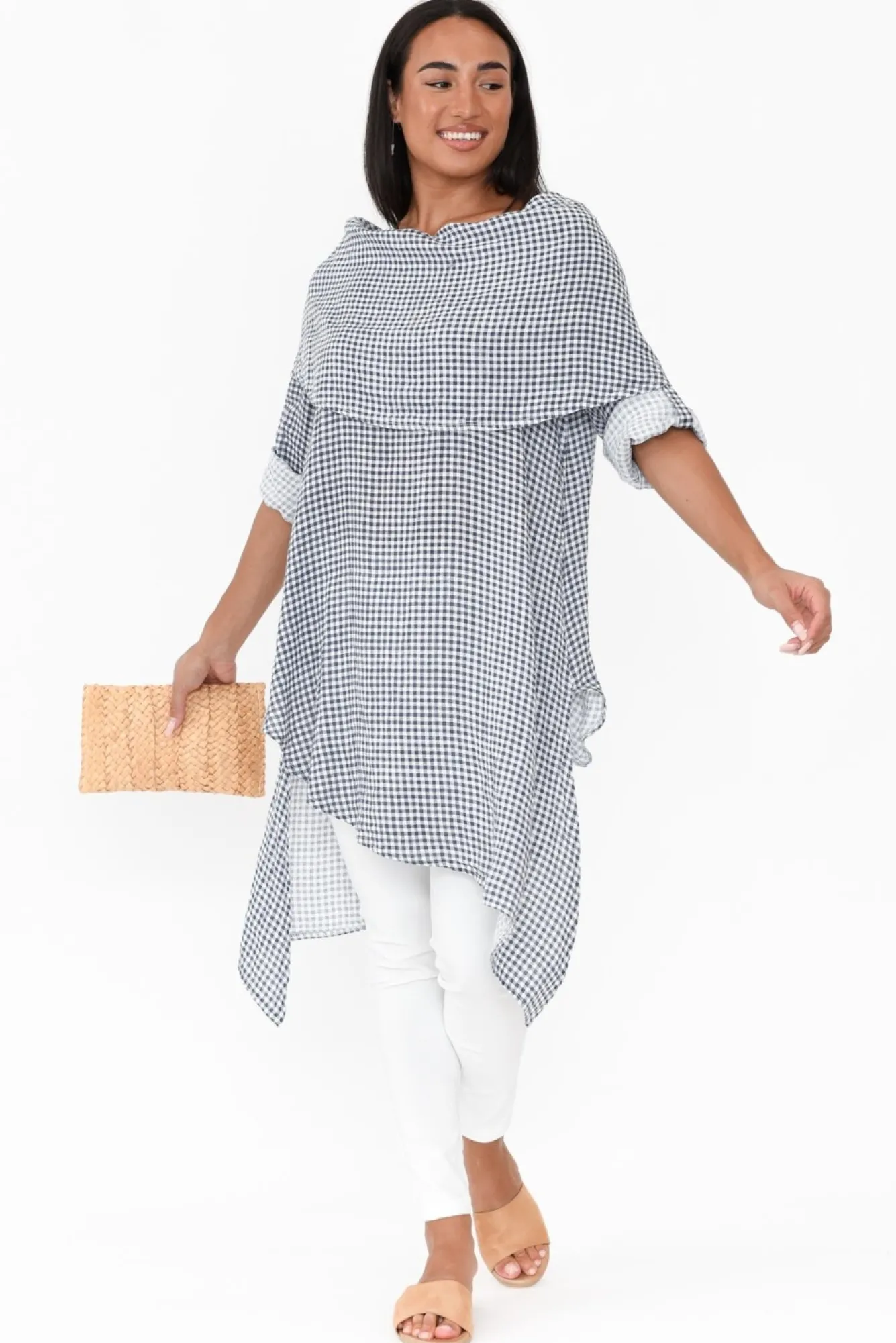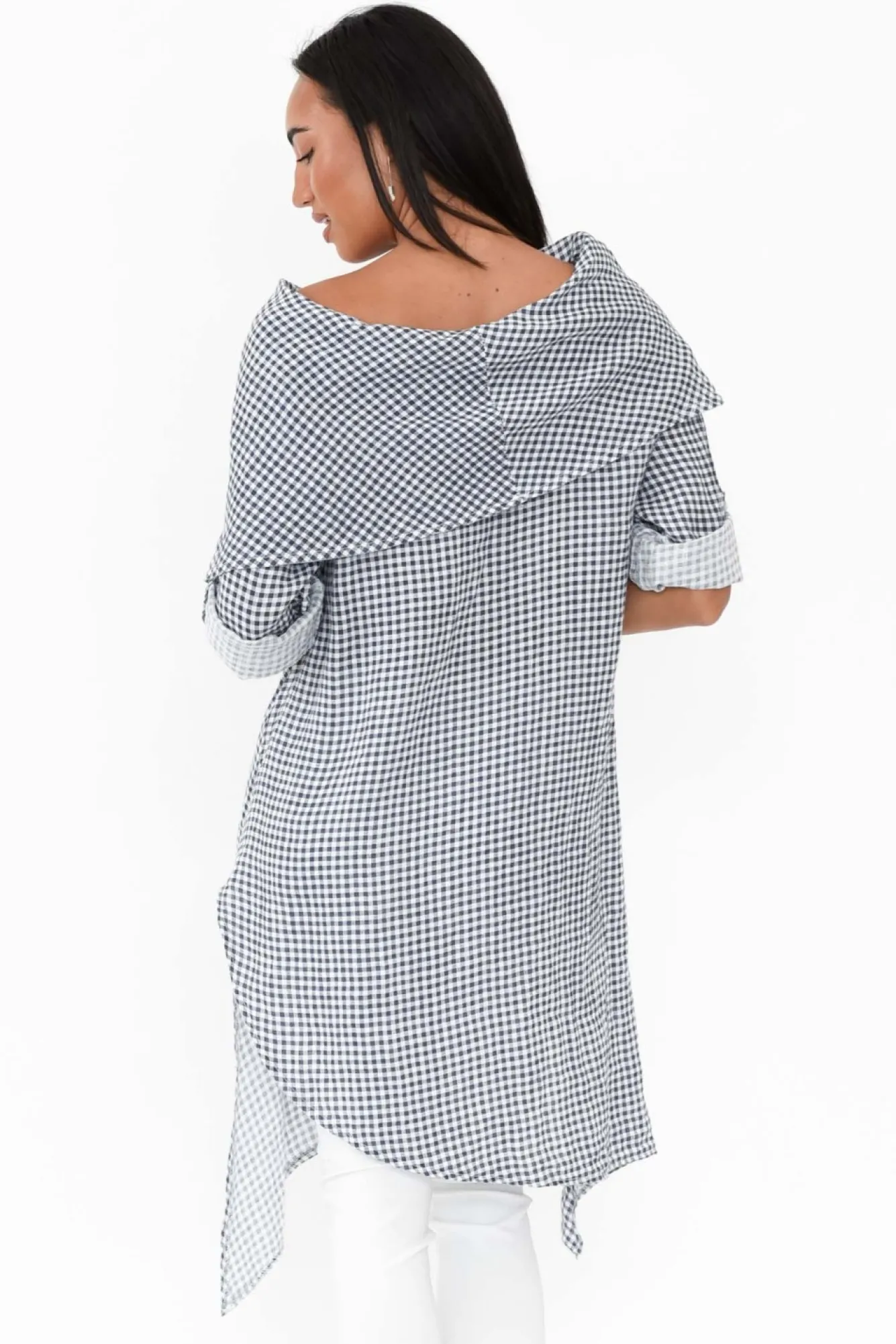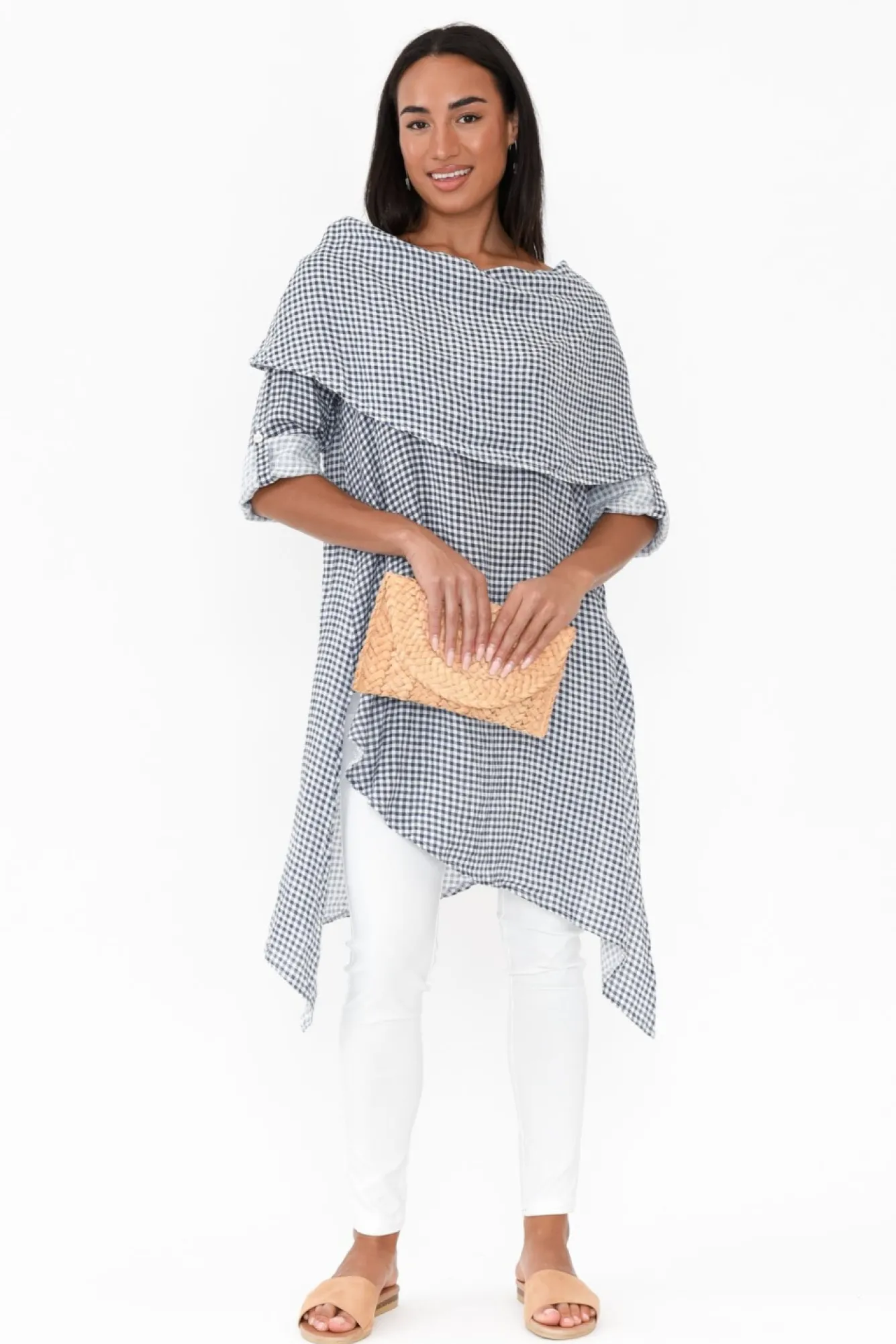 Linen Tops<Donna Donna Grande Navy Gingham Linen Tunic